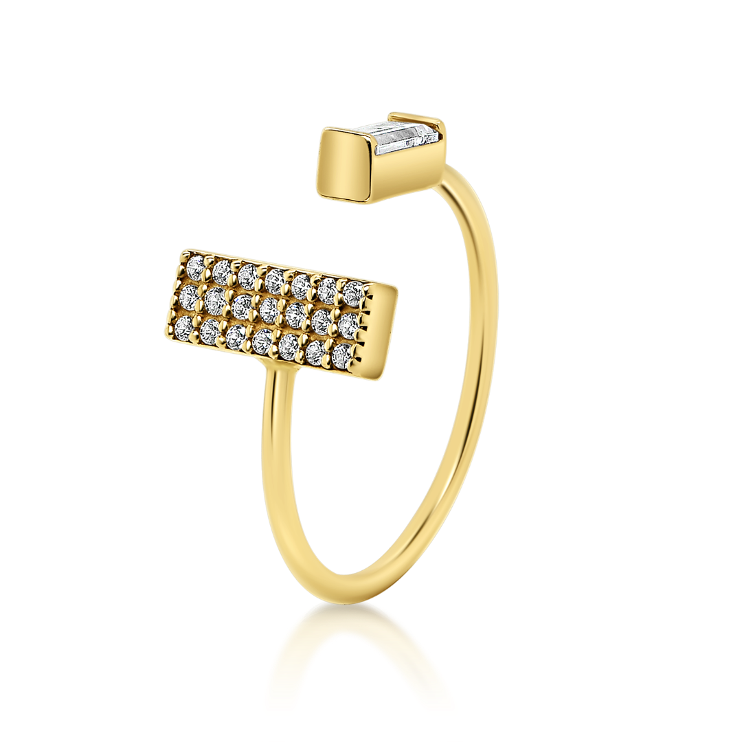 Inel din aur galben de 14K încrustat cu pietre Cubic Zirconia albe.