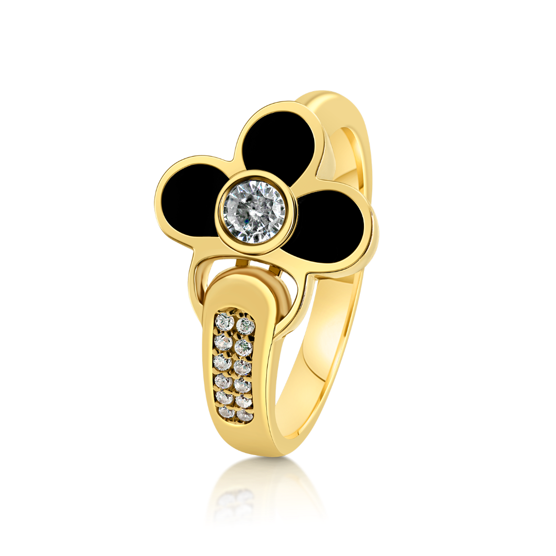Inel din aur galben de 14K, cu pietre Cubic Zirconia și Email negru.