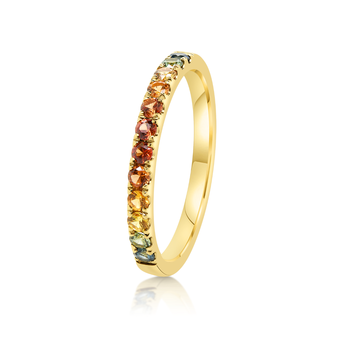 Inel din aur galben de 18K încrustat cu Safire Fancy.