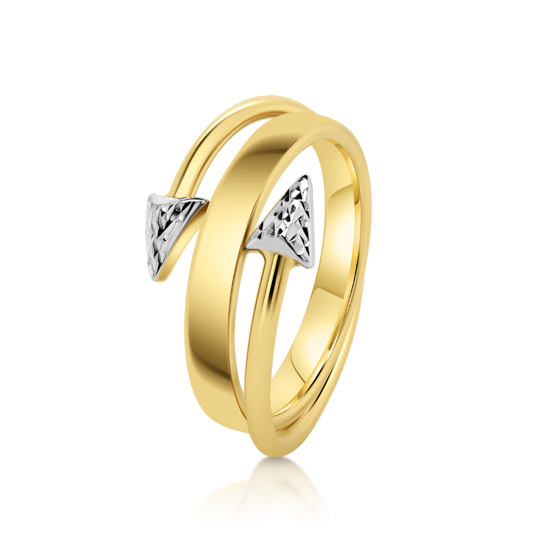 Inel din aur galben de 14K cu elemente fațetate tip săgeată din aur alb.