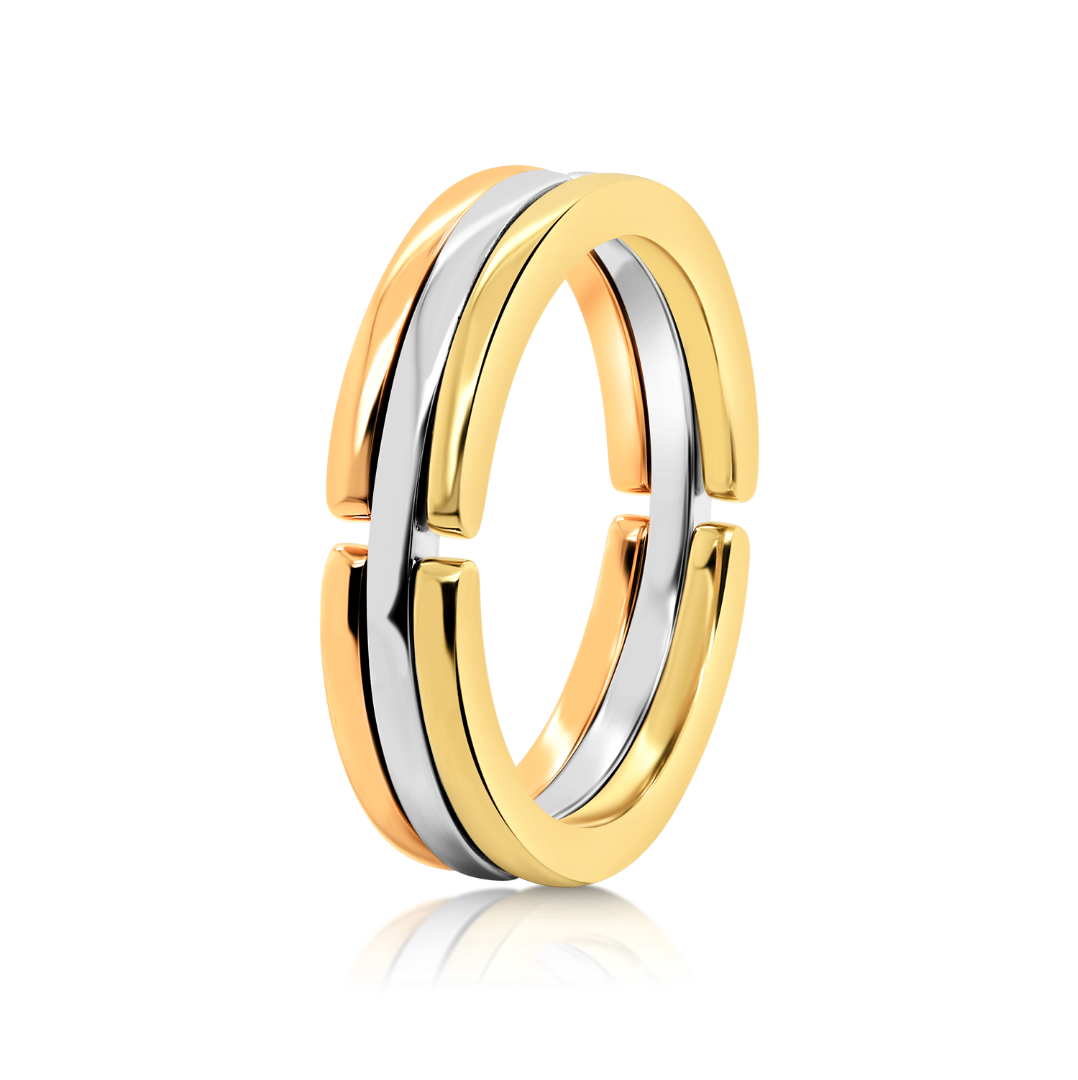 Inel cu design inedit din aur galben, alb și roz de 18K.