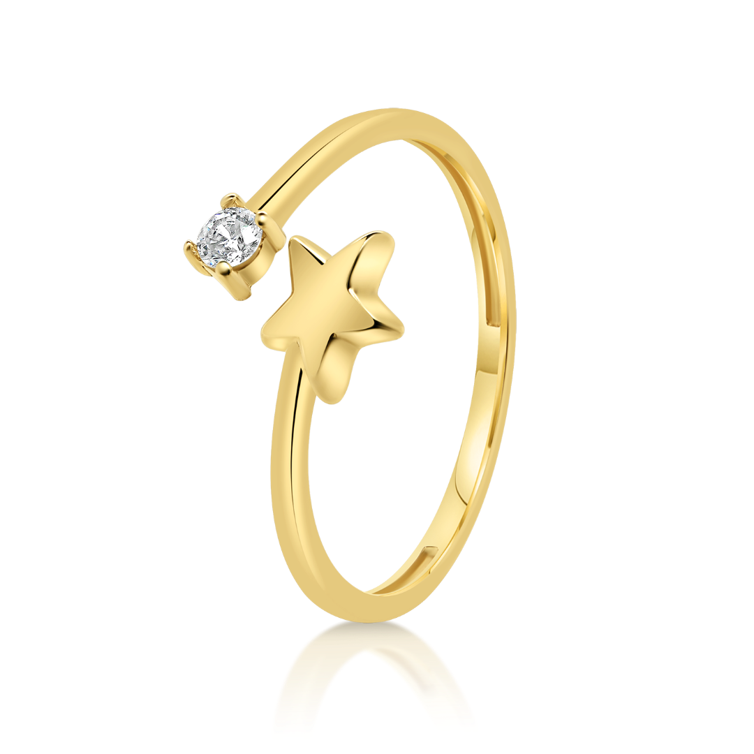 Inel reglabil din aur galben de 14K, cu element stea și piatră Cubic Zirconia.