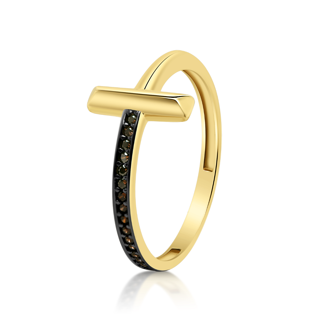 Inel din aur galben de 14K, cu Rodiu negru și pietre Cubic Zirconia.