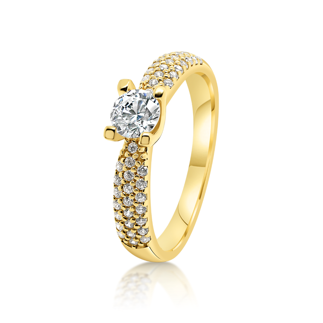 Inel de logodnă din aur galben de 14K cu pietre Cubic Zirconia.