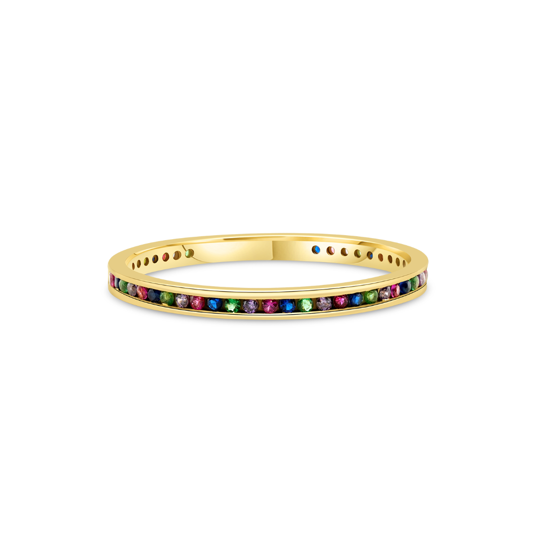 Inel din aur galben de 14K cu pietre cubic zirconia colorate.