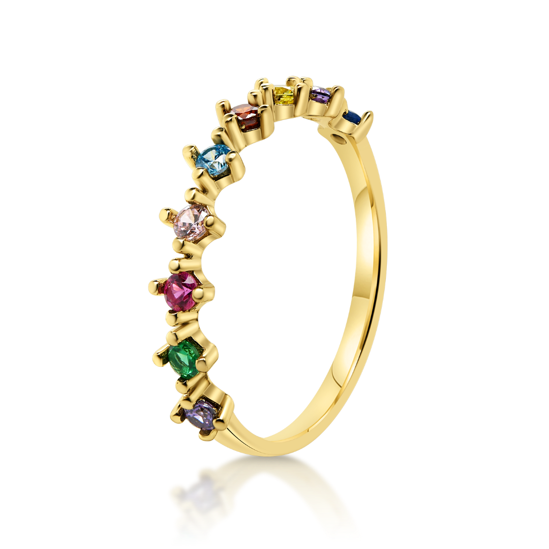 Inel din aur galben de 14K cu pietre Cubic Zirconia colorate.