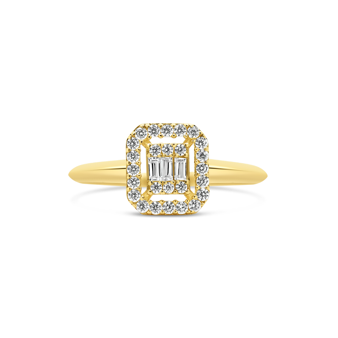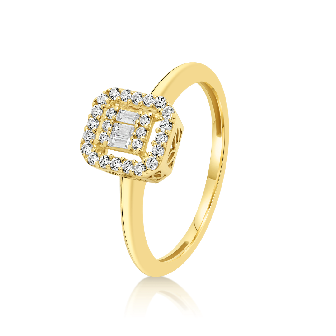 Inel de logodnă din aur galben de 14K cu zirconia incolore.