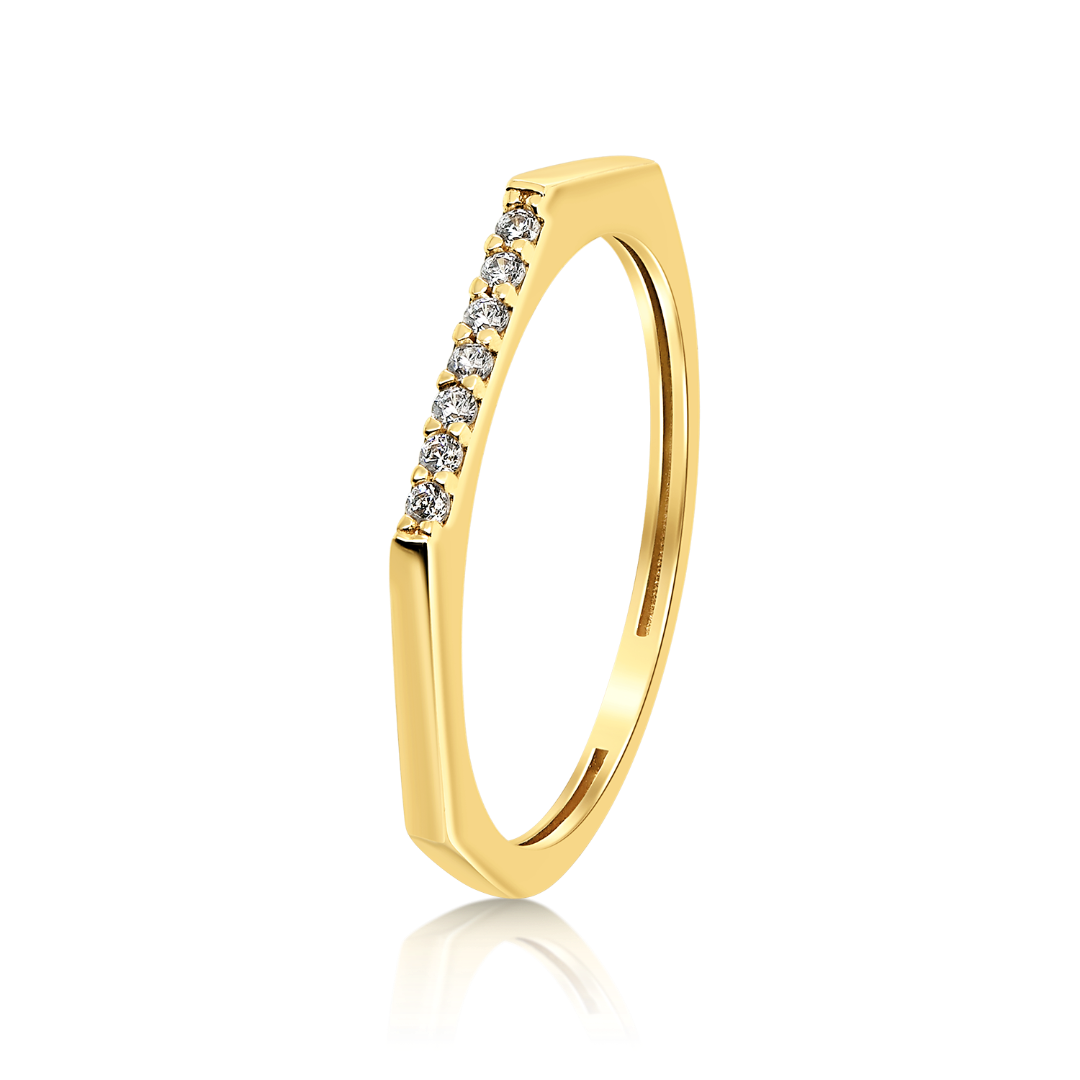 Inel din aur galben de 14K cu pietre Cubic Zirconia albe.