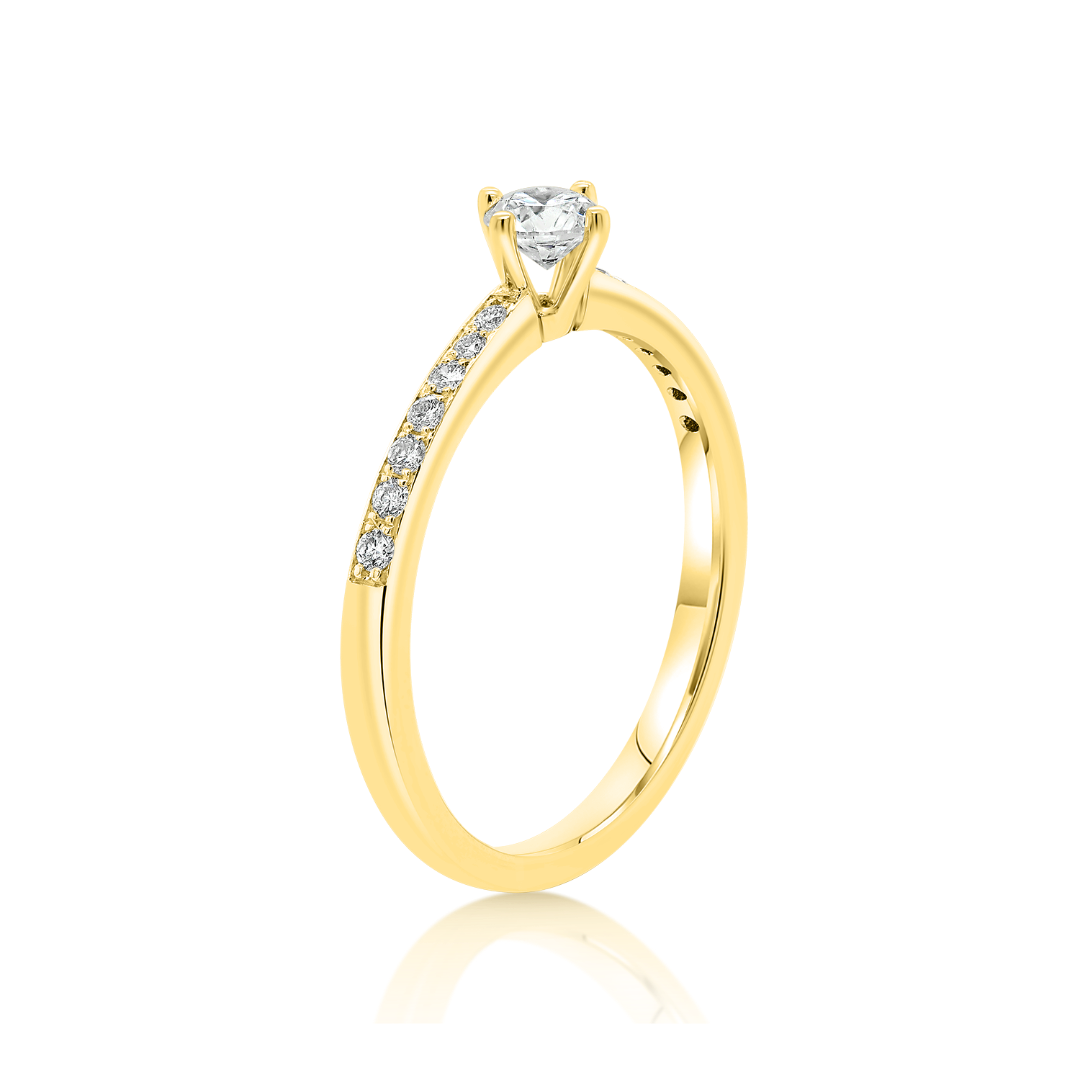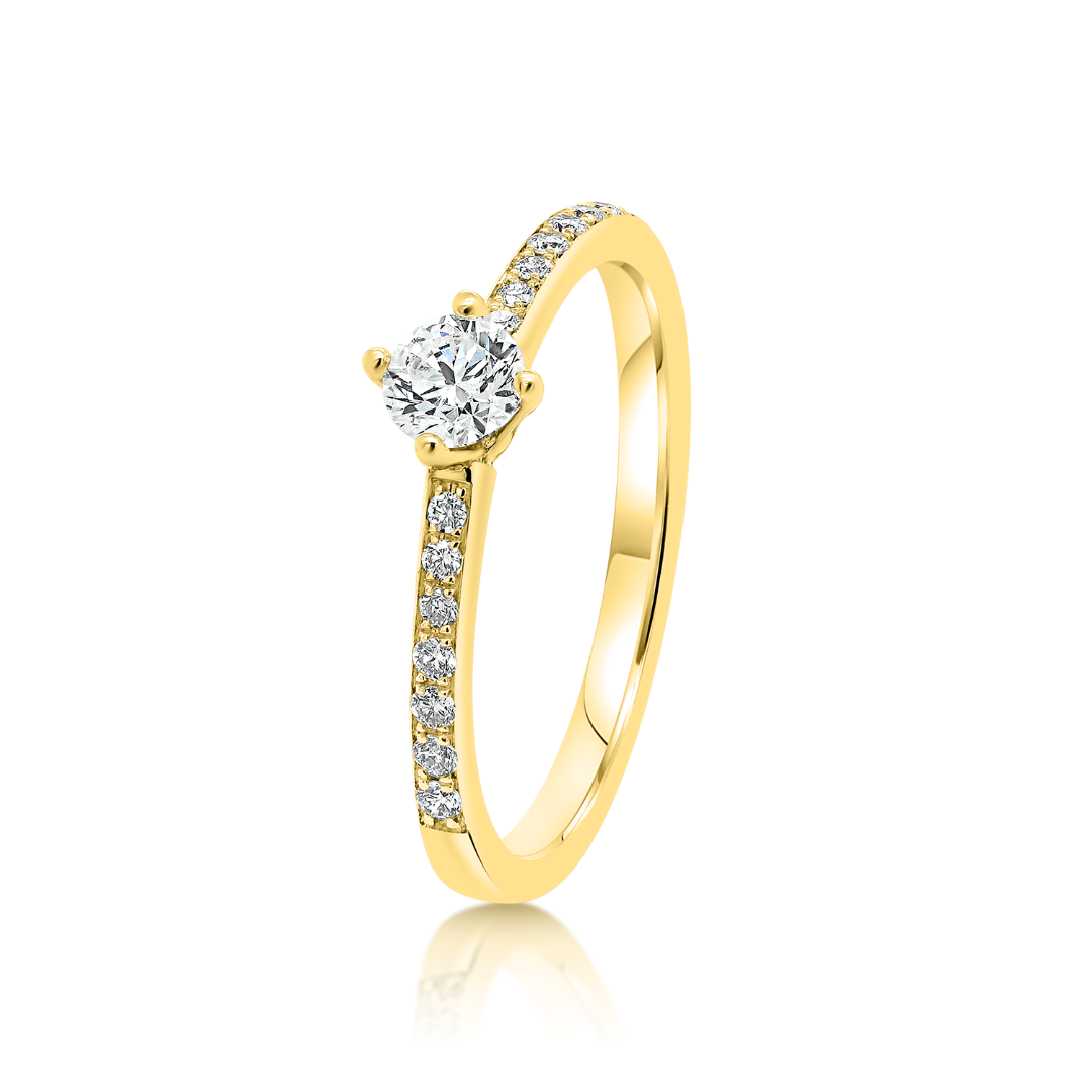 Inel de logodnă din aur galben de 14K cu pietre cubic zirconia.