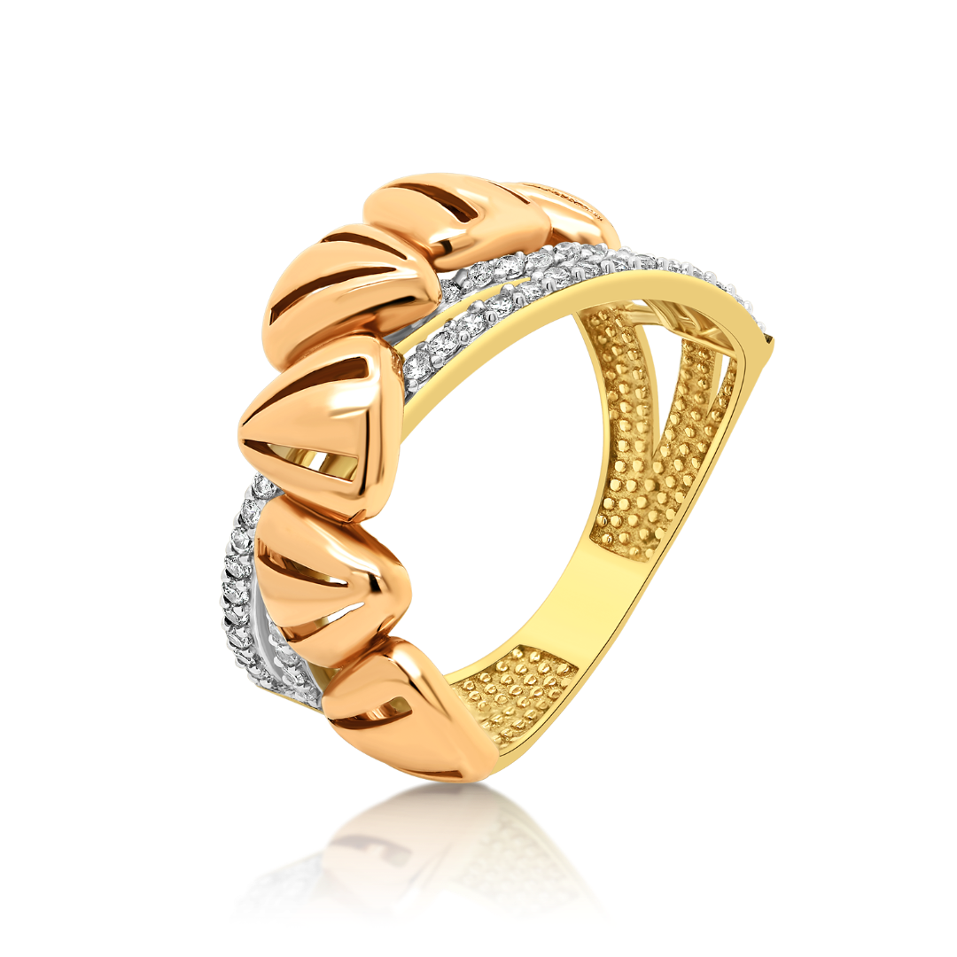 Inel din aur galben de 14K cu elemente din aur roz și zirconii incolore.