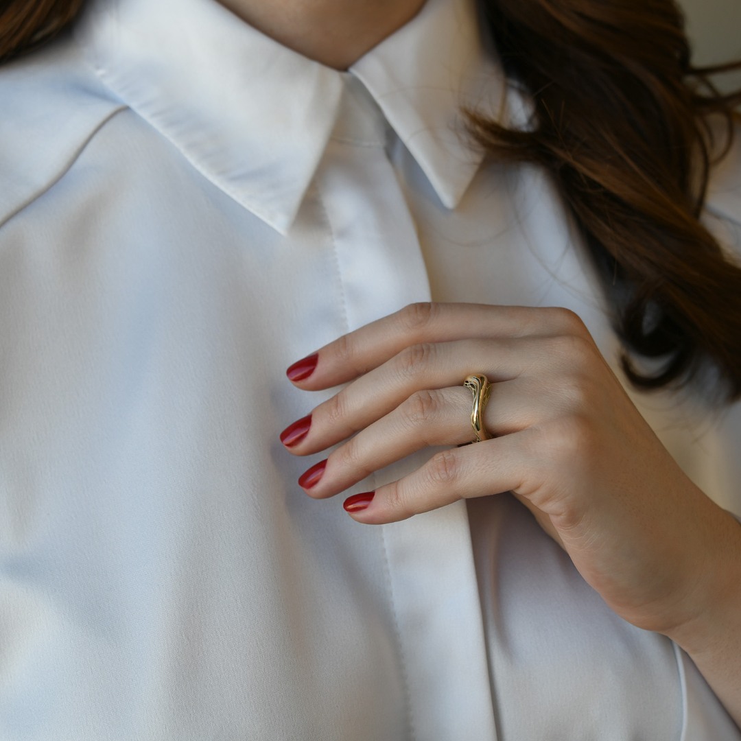 Inel asimetric din aur galben de 14K cu decupaje laterale.