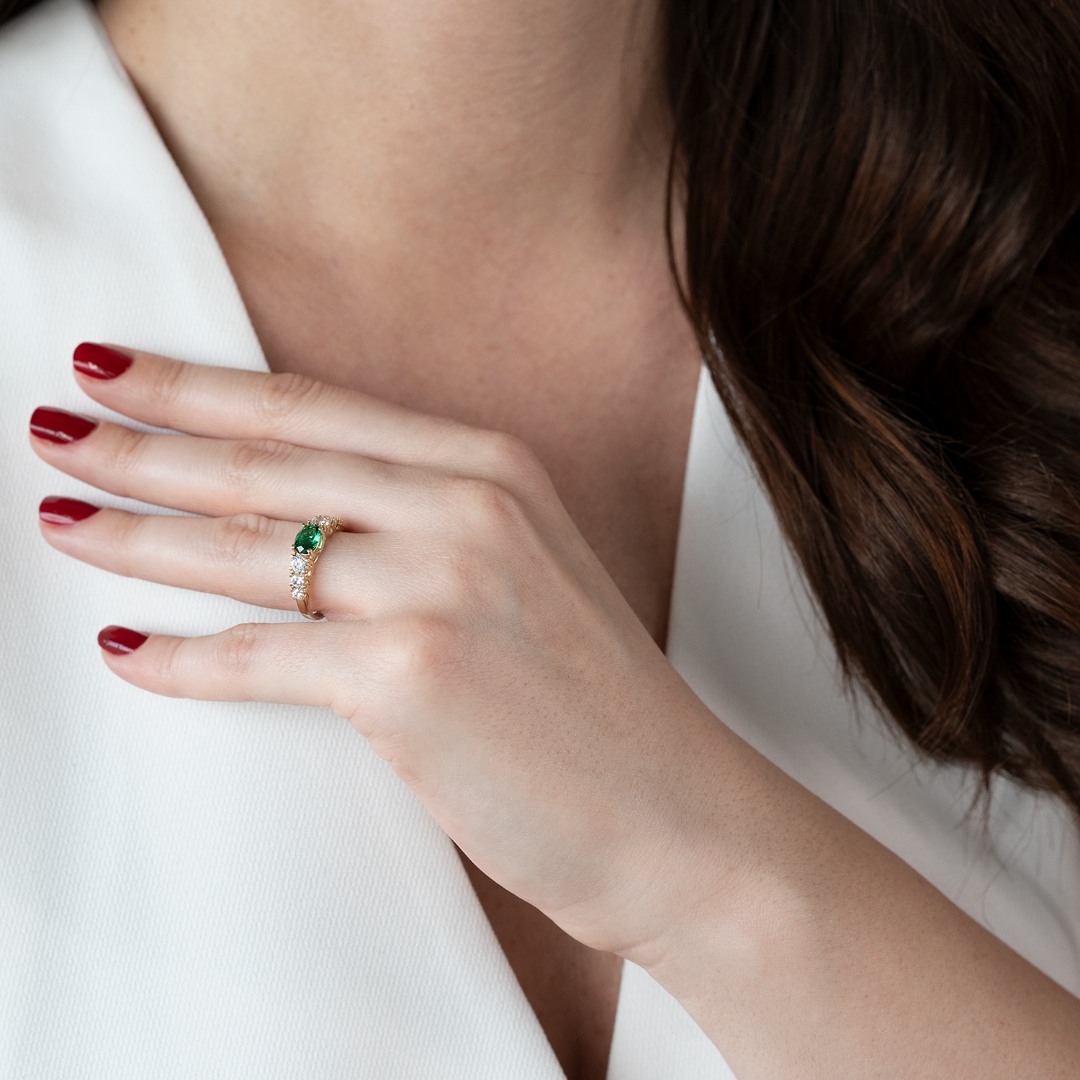 Inel din aur galben de 14K cu pietre cubic zirconia.
