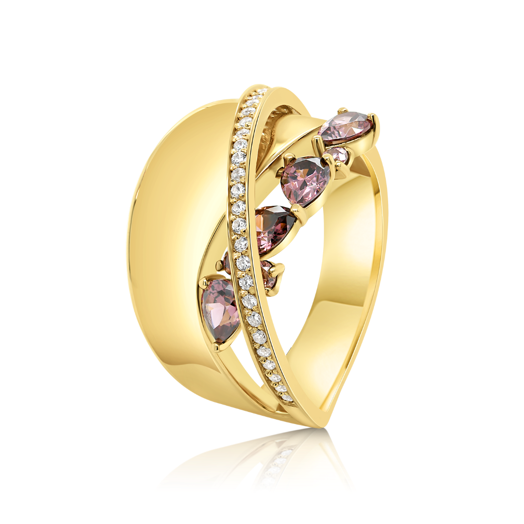 Inel din aur galben de 14K cu pietre Cubic Zirconia.