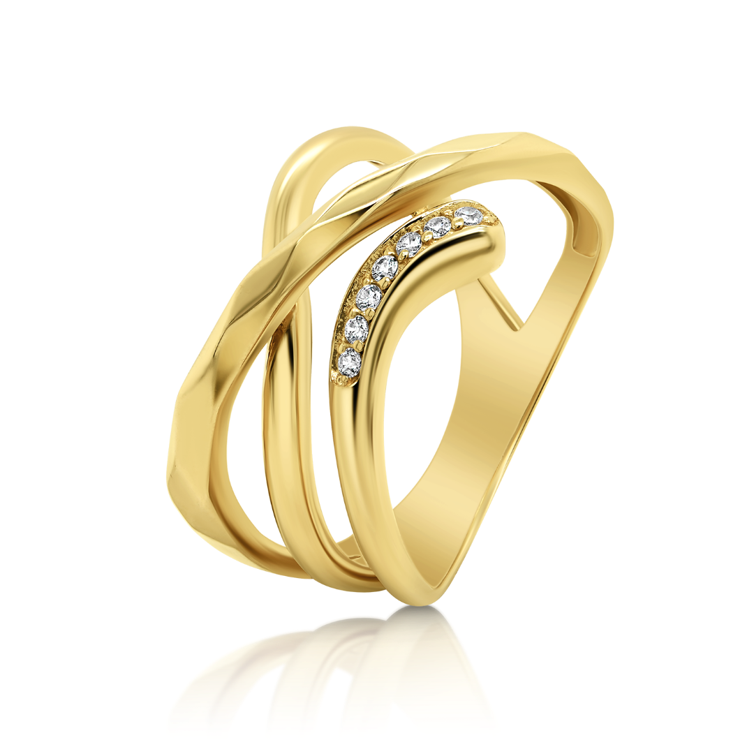 Inel din aur galben de 14K cu pietre Cubic Zirconia.