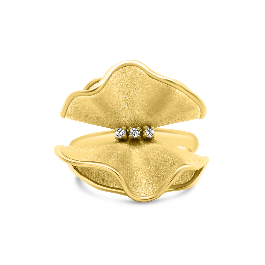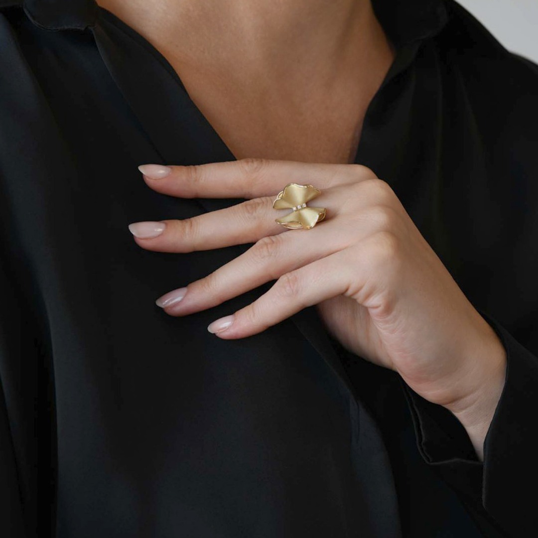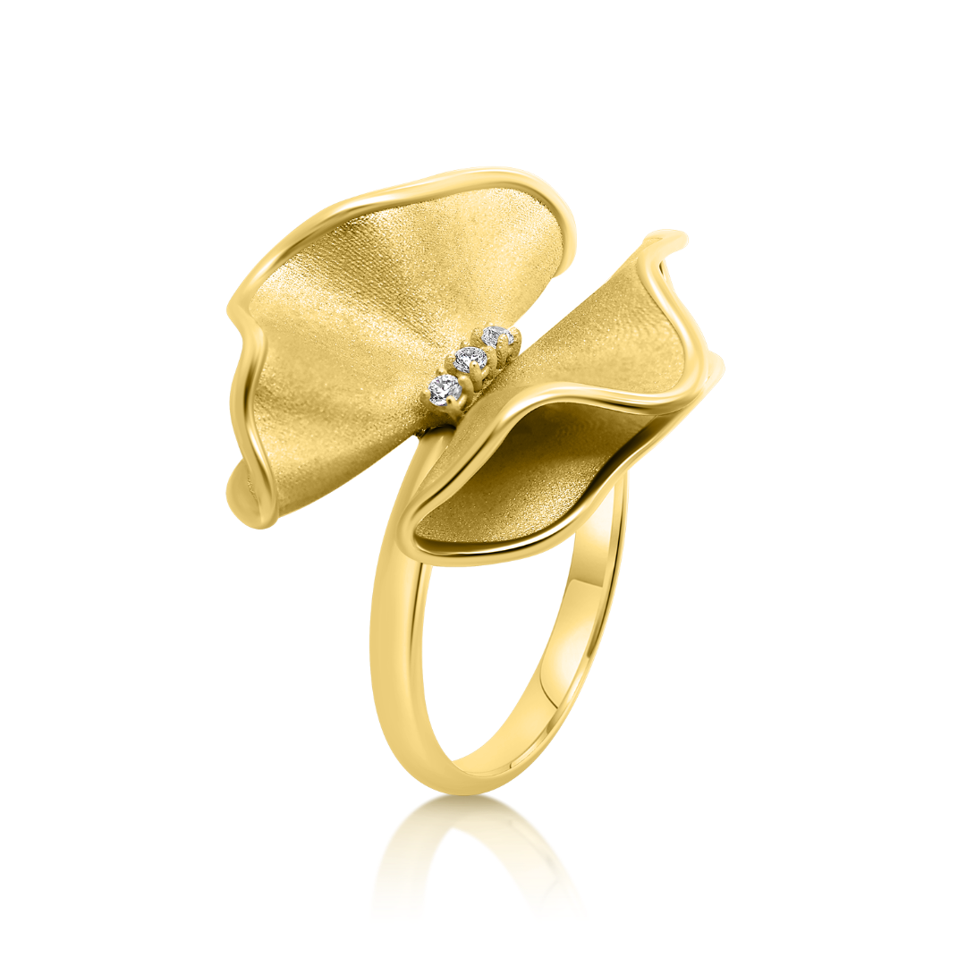 Inel cu efect satinat din aur galben de 14K și zirconia incolore.