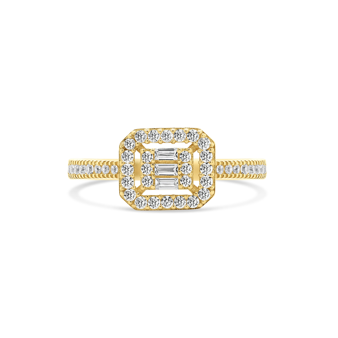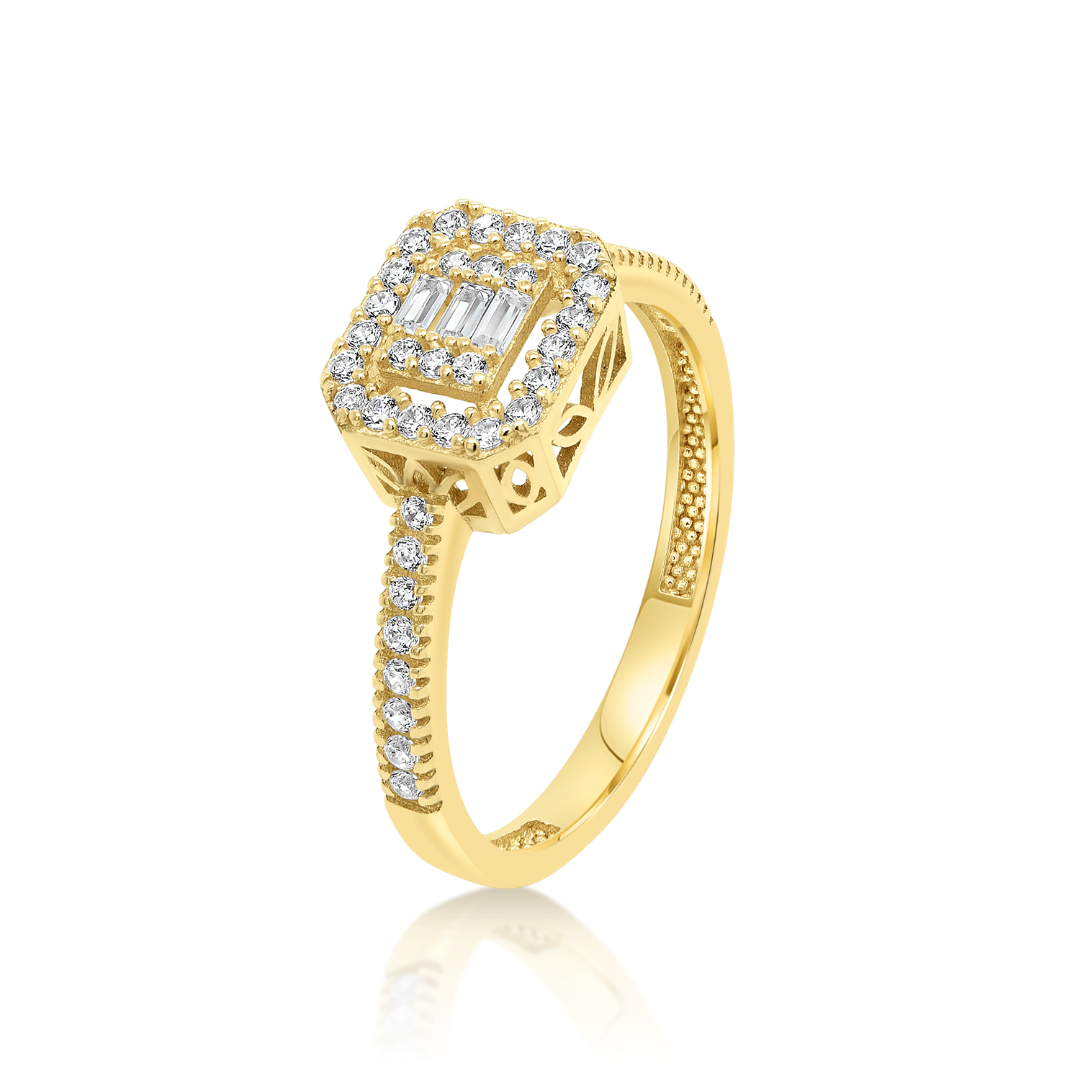 Inel de logodnă din aur galben de 14K cu pietre cubic zirconia.