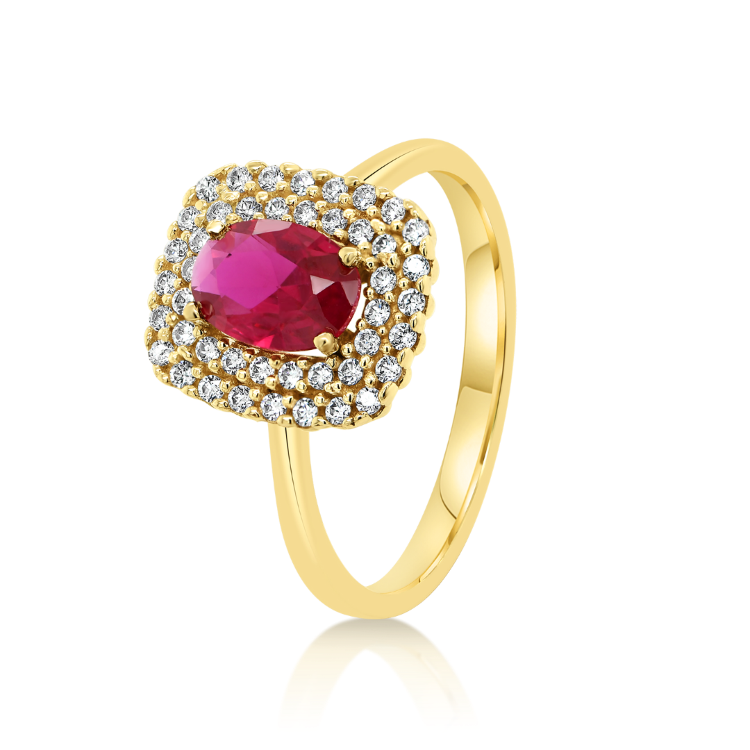 Inel din aur galben de 14K cu pietre Cubic Zirconia.