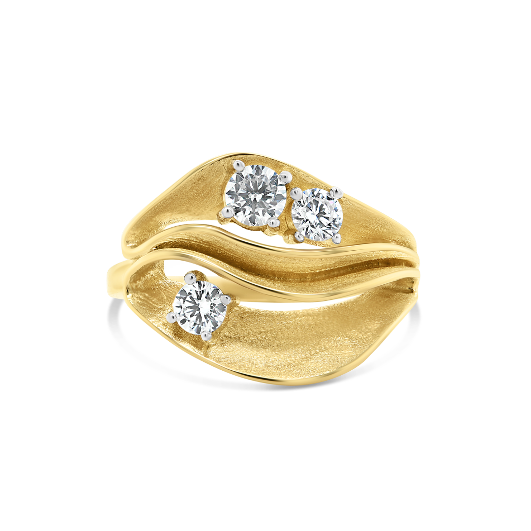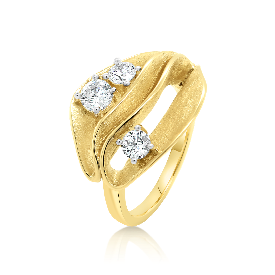 Inel cu efect satinat din aur galben de 14K cu pietre cubic zirconia.