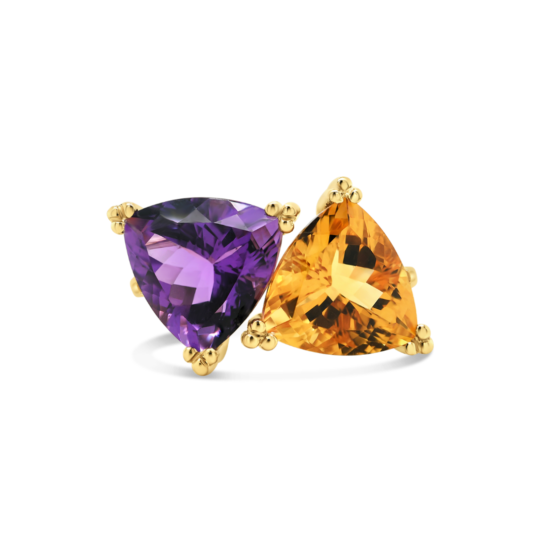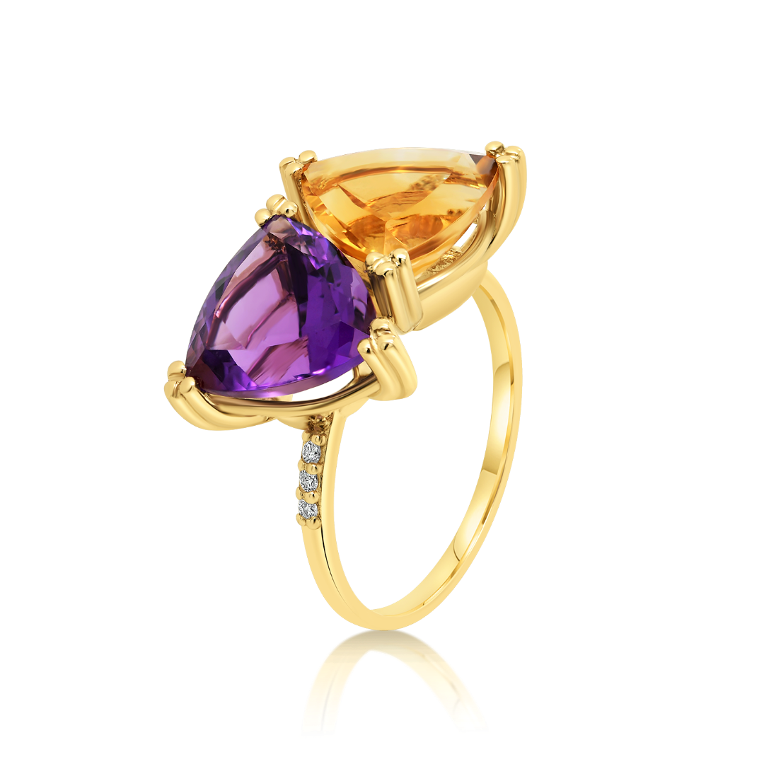 Inel din aur galben de 14K cu Ametist și Citrin