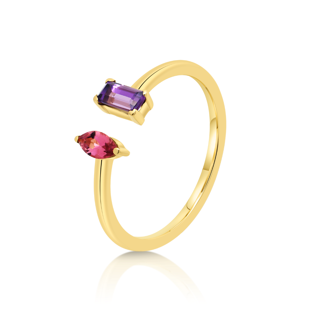 Inel din aur galben de 14K, cu Ametist și Turmalin roz