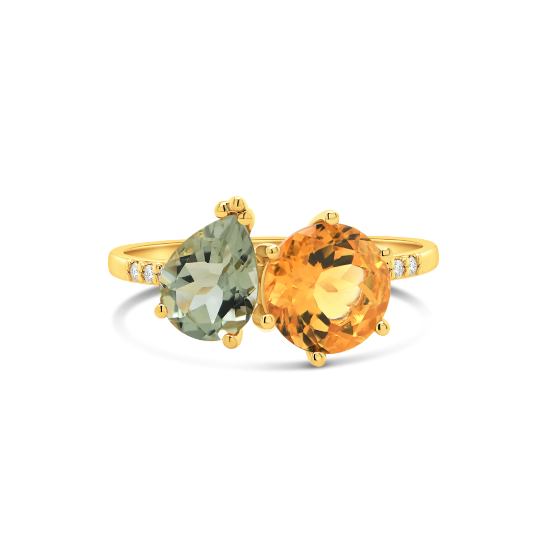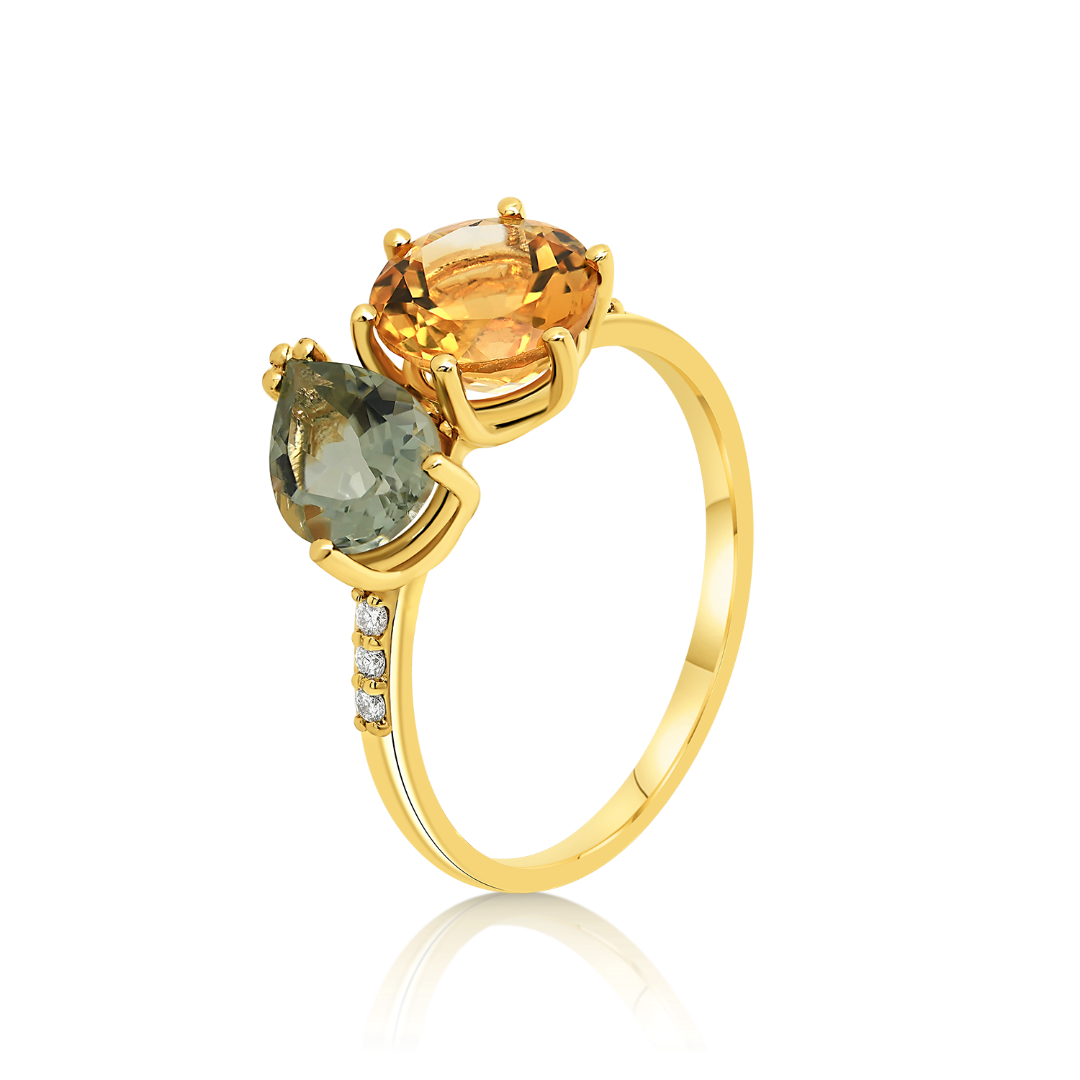 Inel din aur galben de 14K cu Ametist verde și Citrin