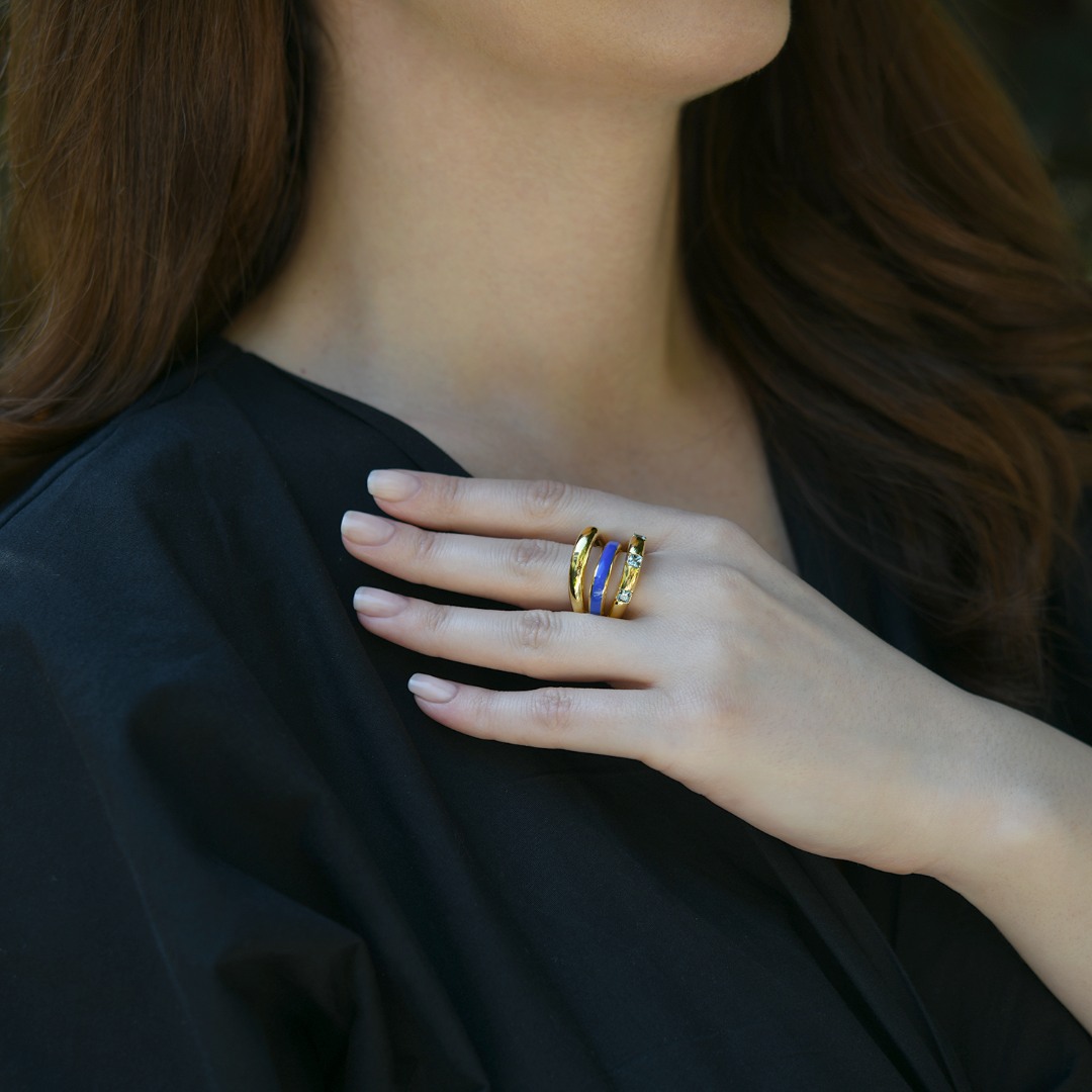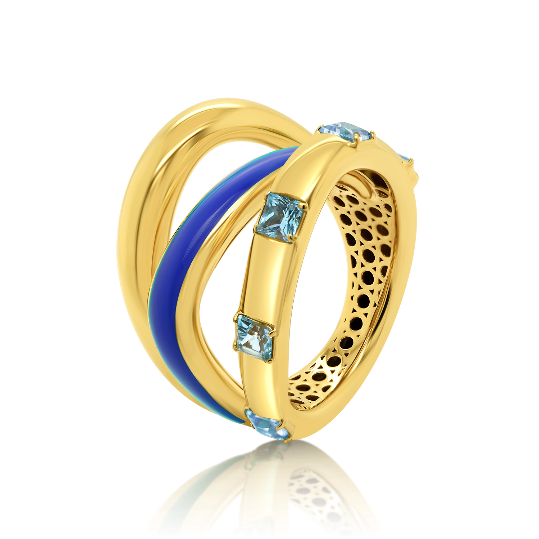 Inel din aur galben de 14K cu Ceramică și Topaze