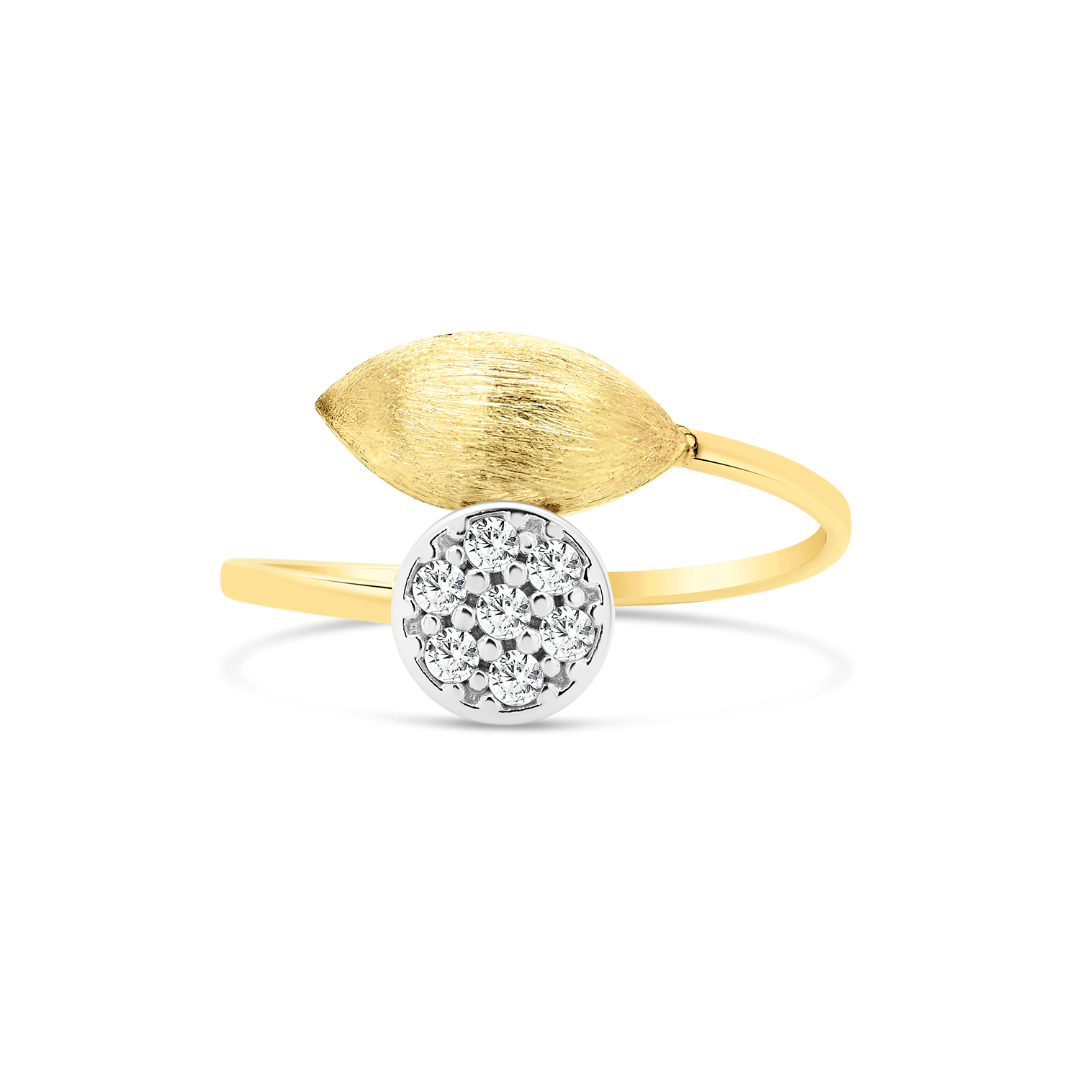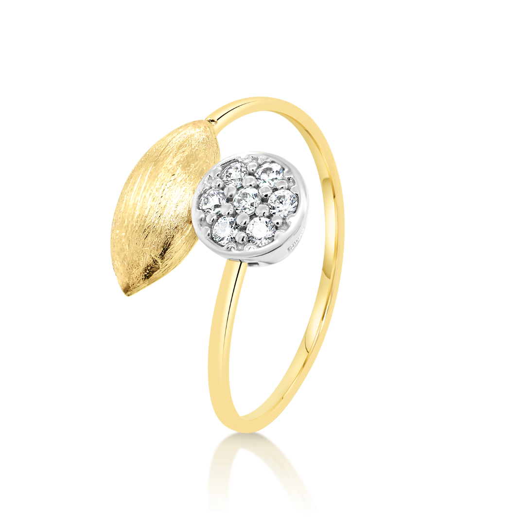 Inel din aur galben de 14K, cu element satinat și zirconia incolore.