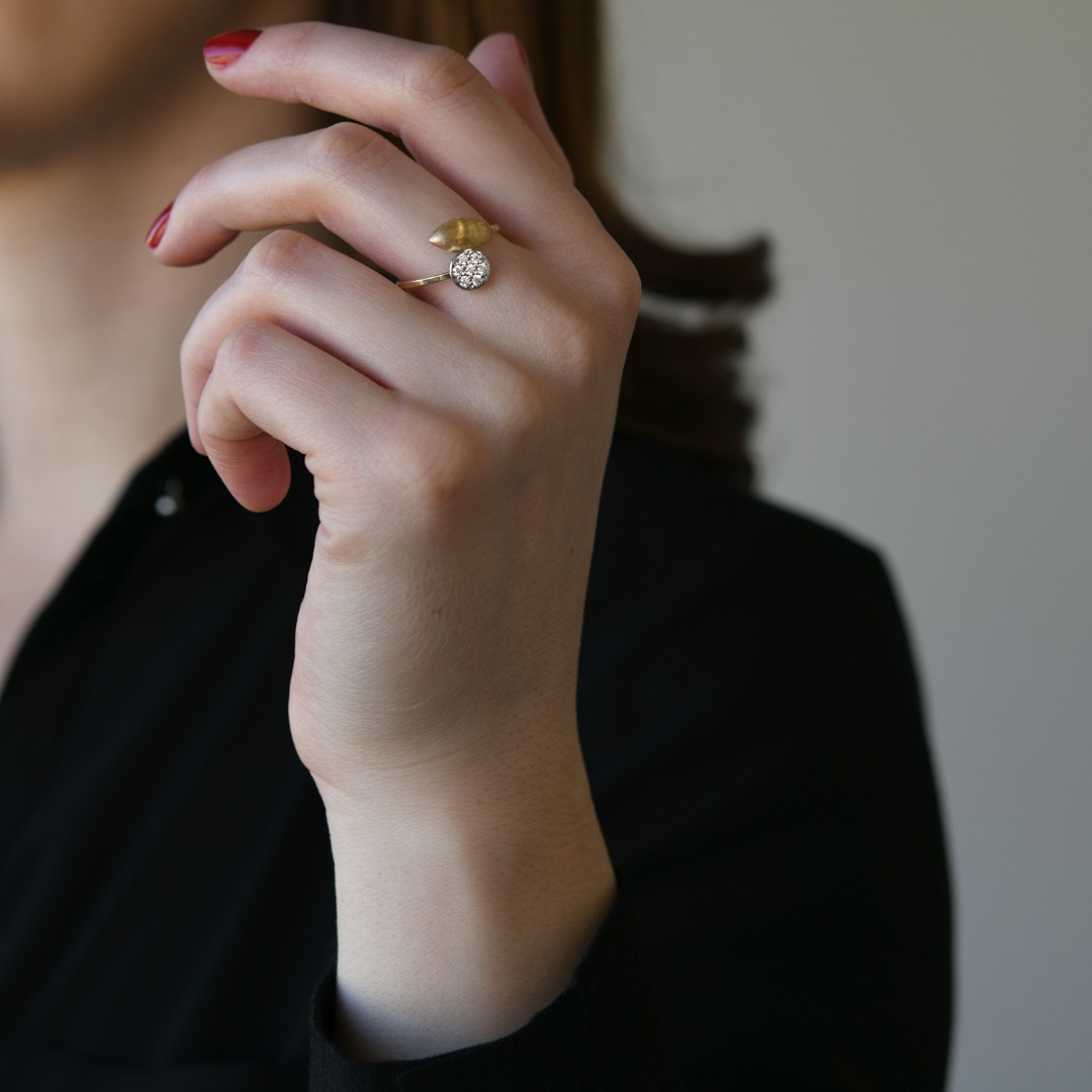 Inel din aur galben de 14K cu element satinat
