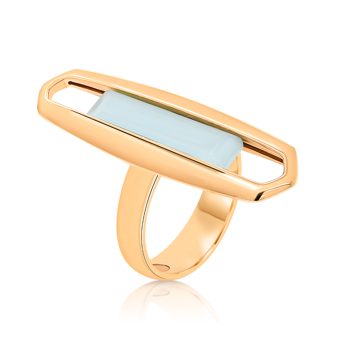 Inel din aur roz de 14K cu piatră Milky AquaMarine.