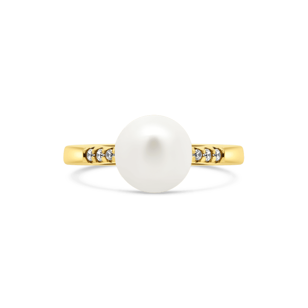 Inel din aur galben de 14K cu Perlă și pietre cubic zirconia.