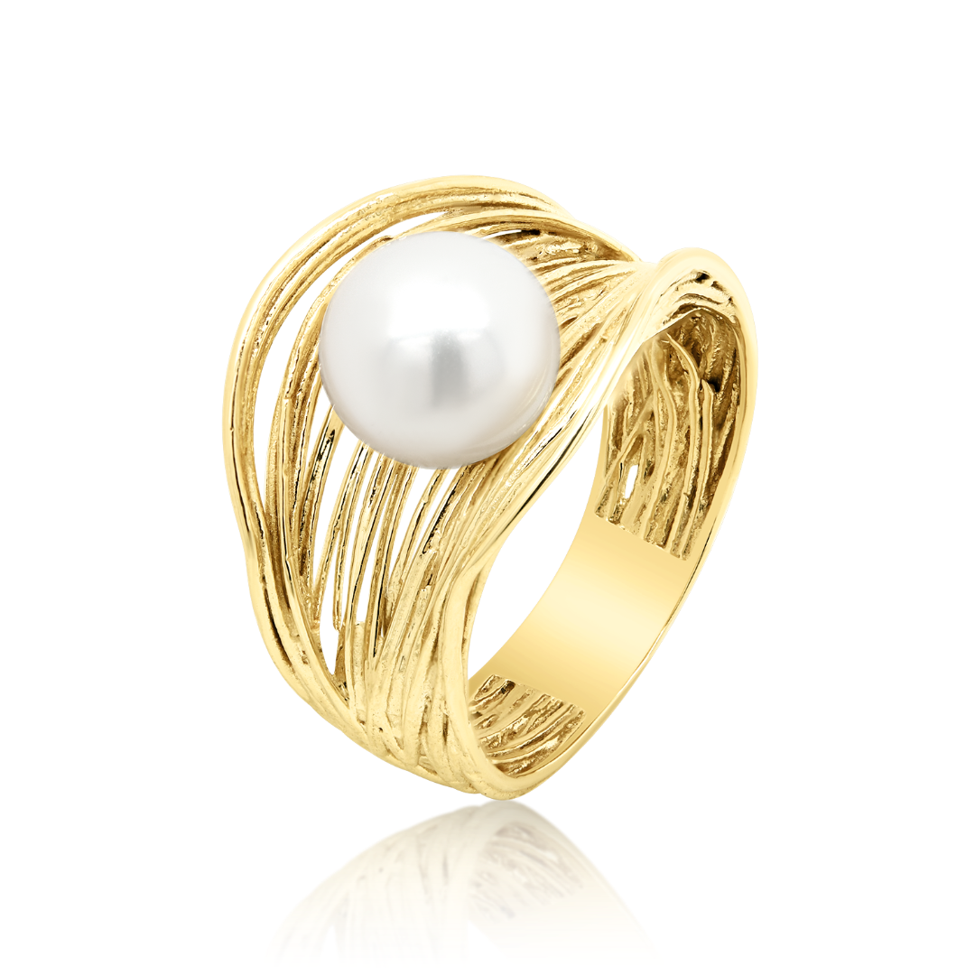 Inel din aur galben de 14K cu Perlă