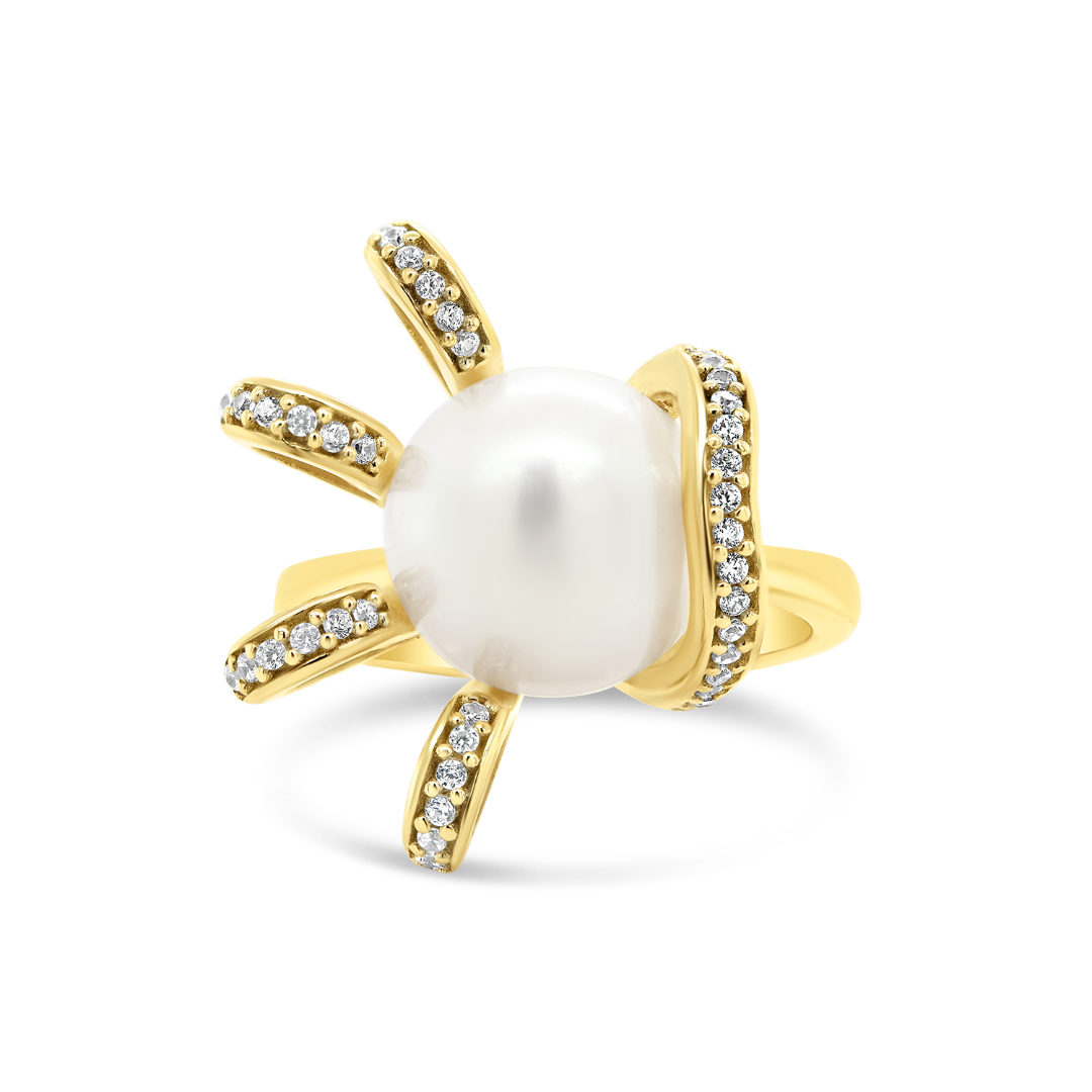 Inel din aur galben de 14K cu Perlă de cultură și pietre zirconia.