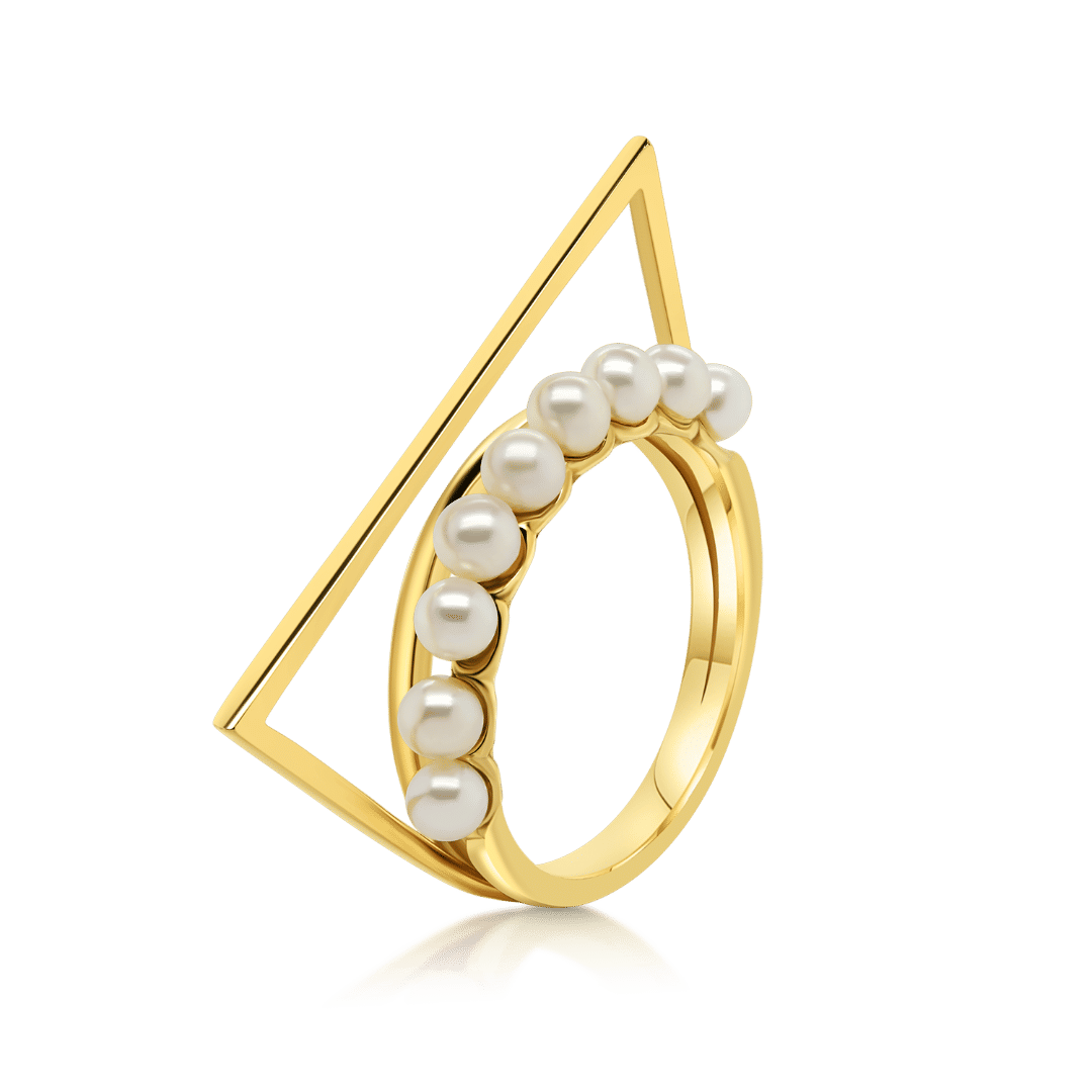 Inel din aur galben de 14K, cu element geometric și Perle.
