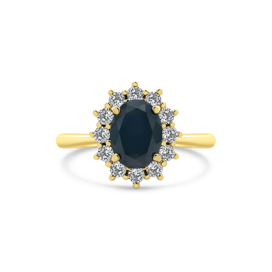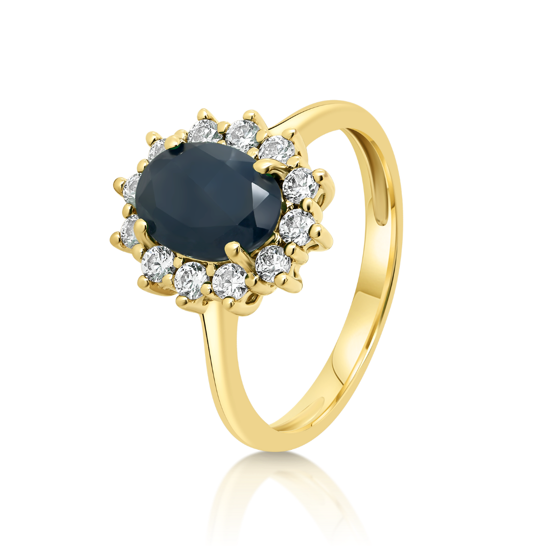 Inel din aur galben de 14K cu piatră Corindon albastră și zirconia incolore.
