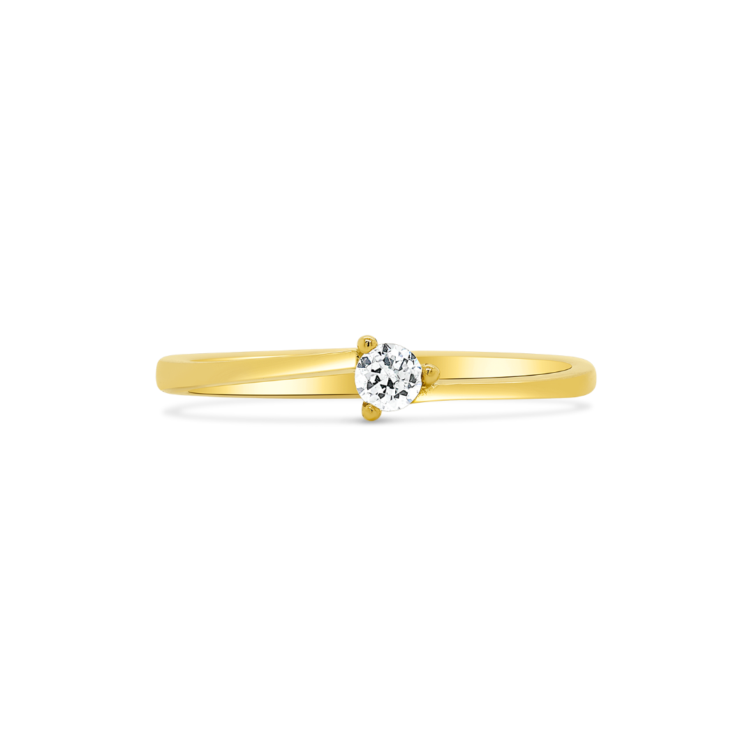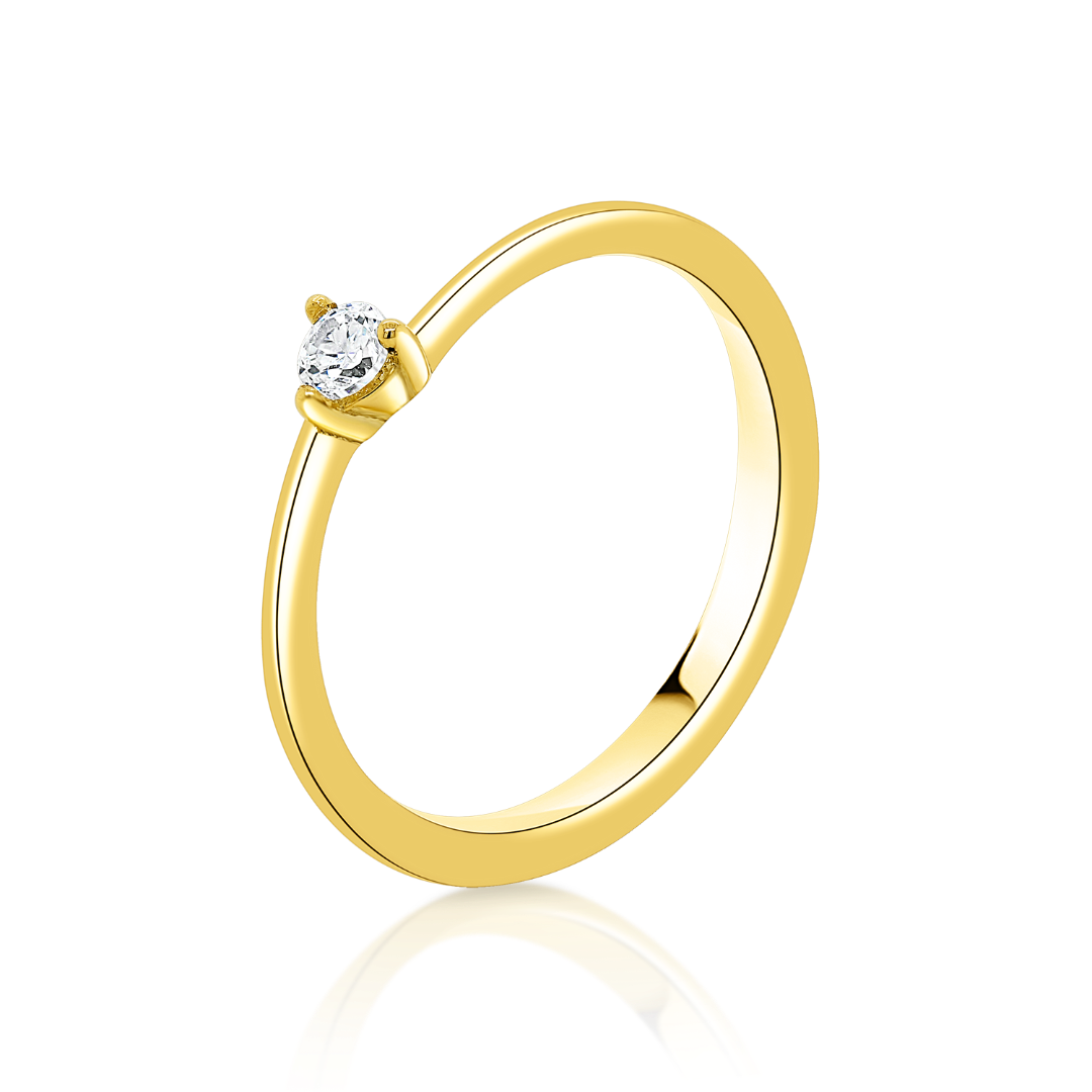 Inel de logodnă din aur galben de 14K cu piatră cubic zirconia.