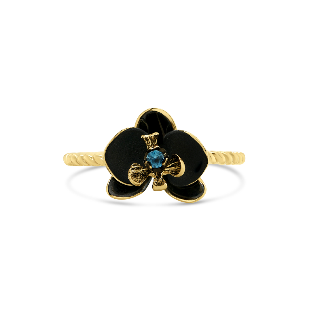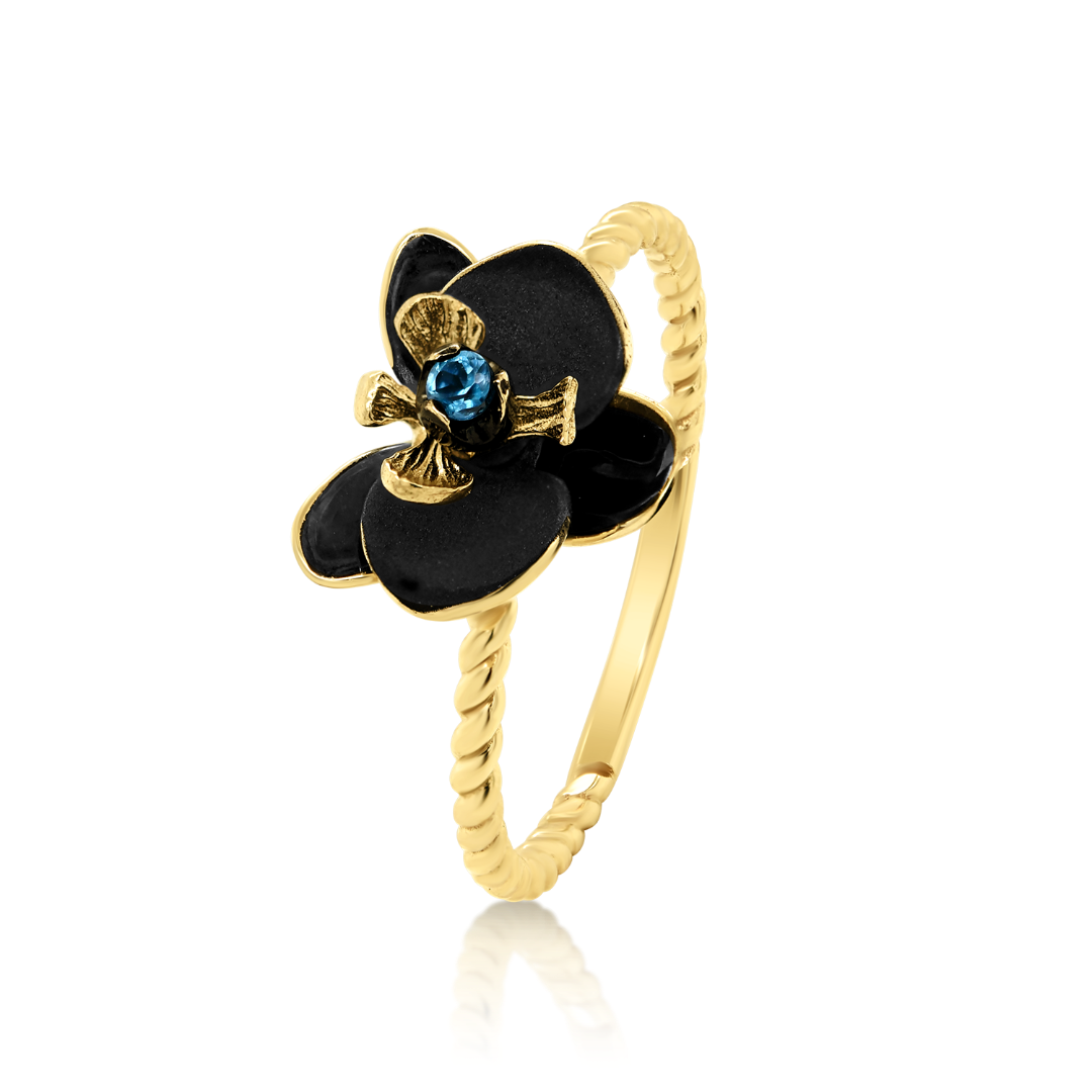 Inel din aur galben de 14K, cu Email negru și o piatră London Blue Topaz de 0.03ct.