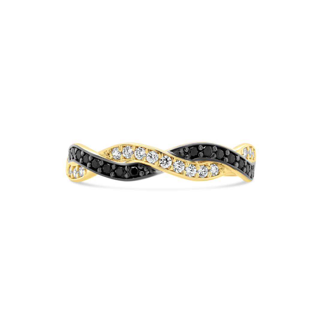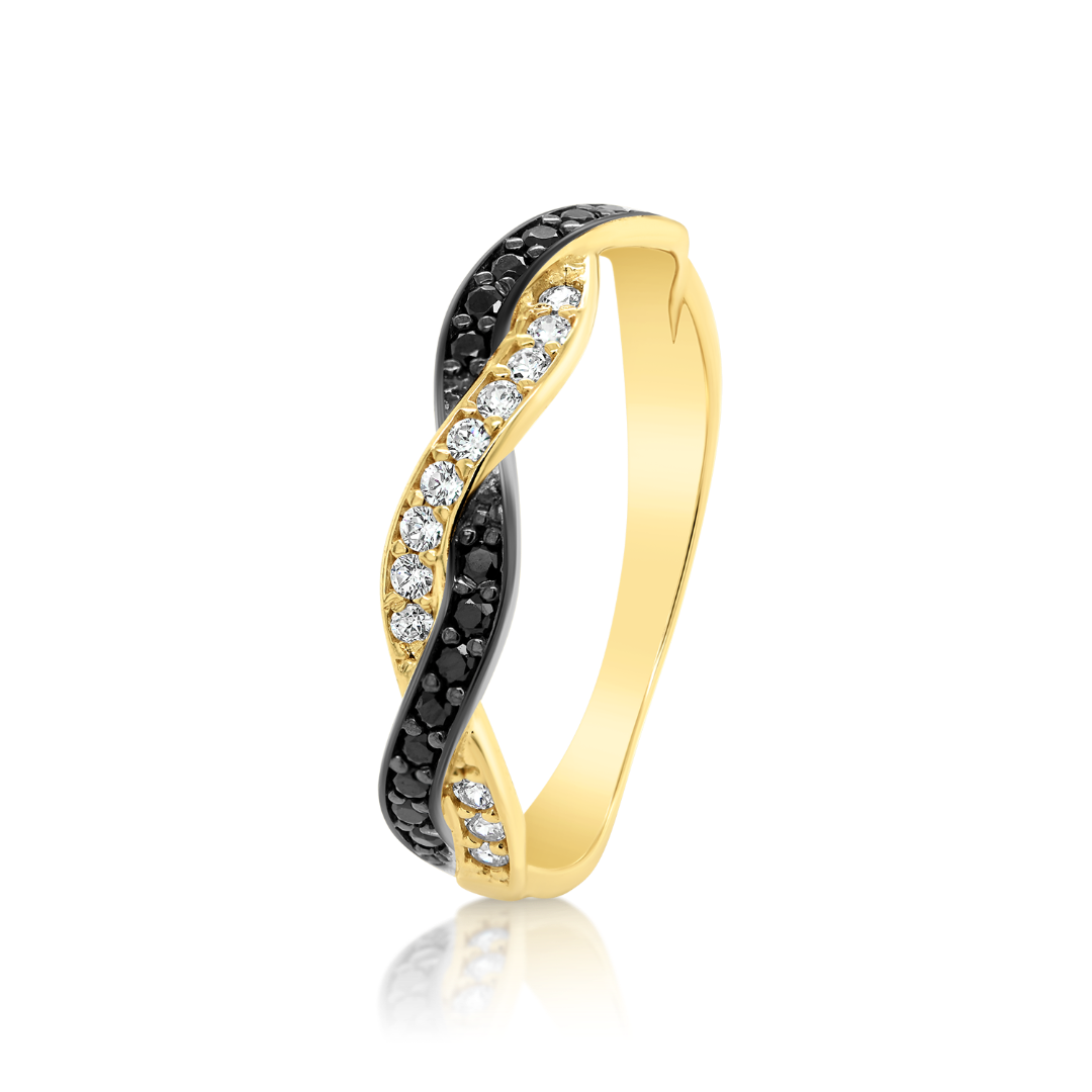 Inel din aur galben de 14K cu pietre cubic zirconia și rodiu negru.