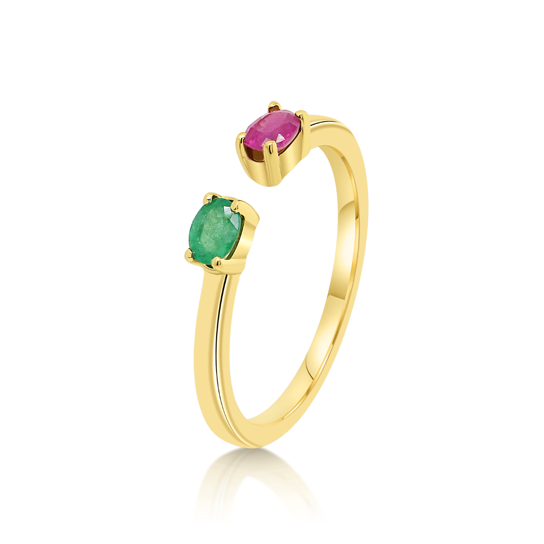 Inel din aur galben de 14K, cu Smarald și Rubin