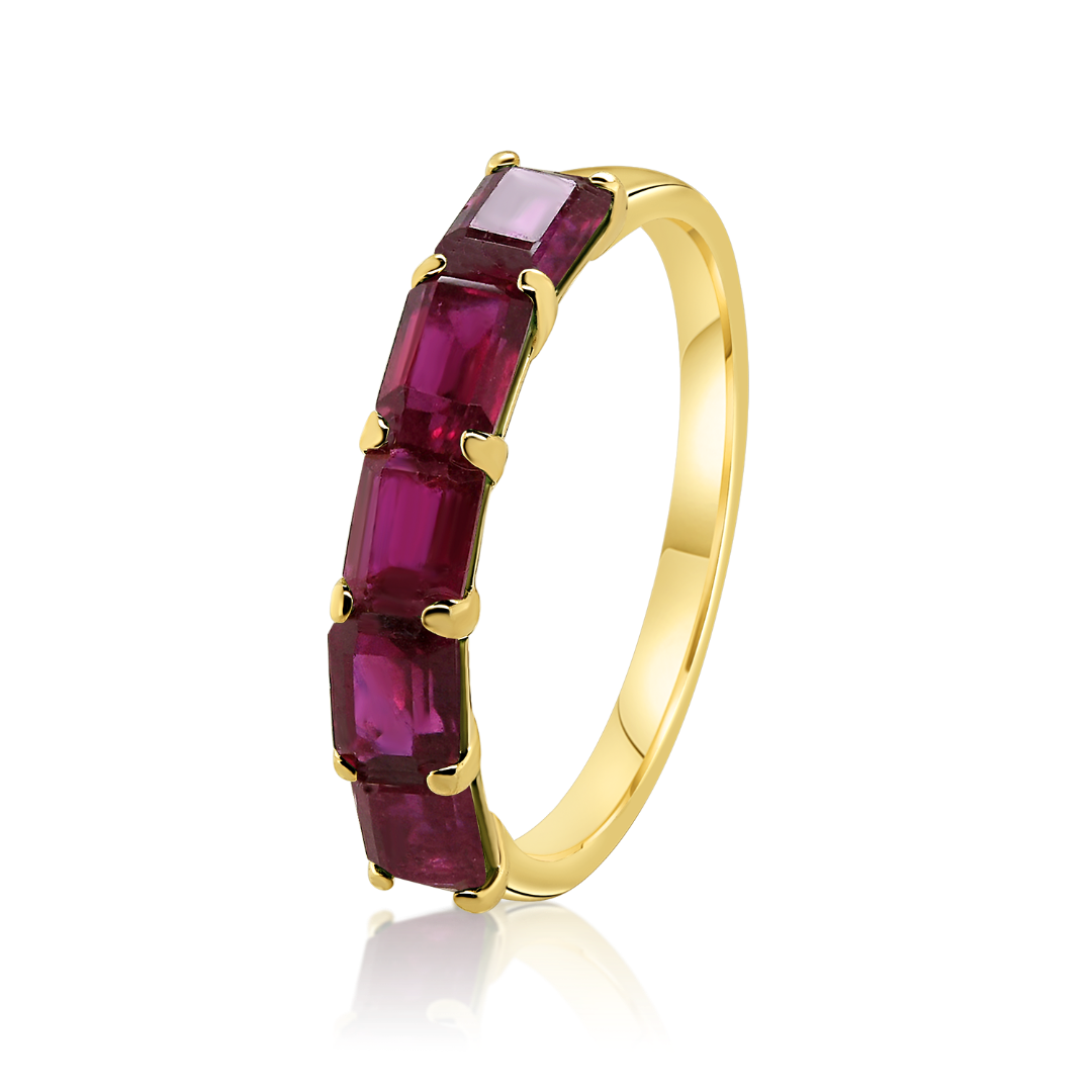Inel din aur galben de 14K cu 5 Rubine de 1.50ct.