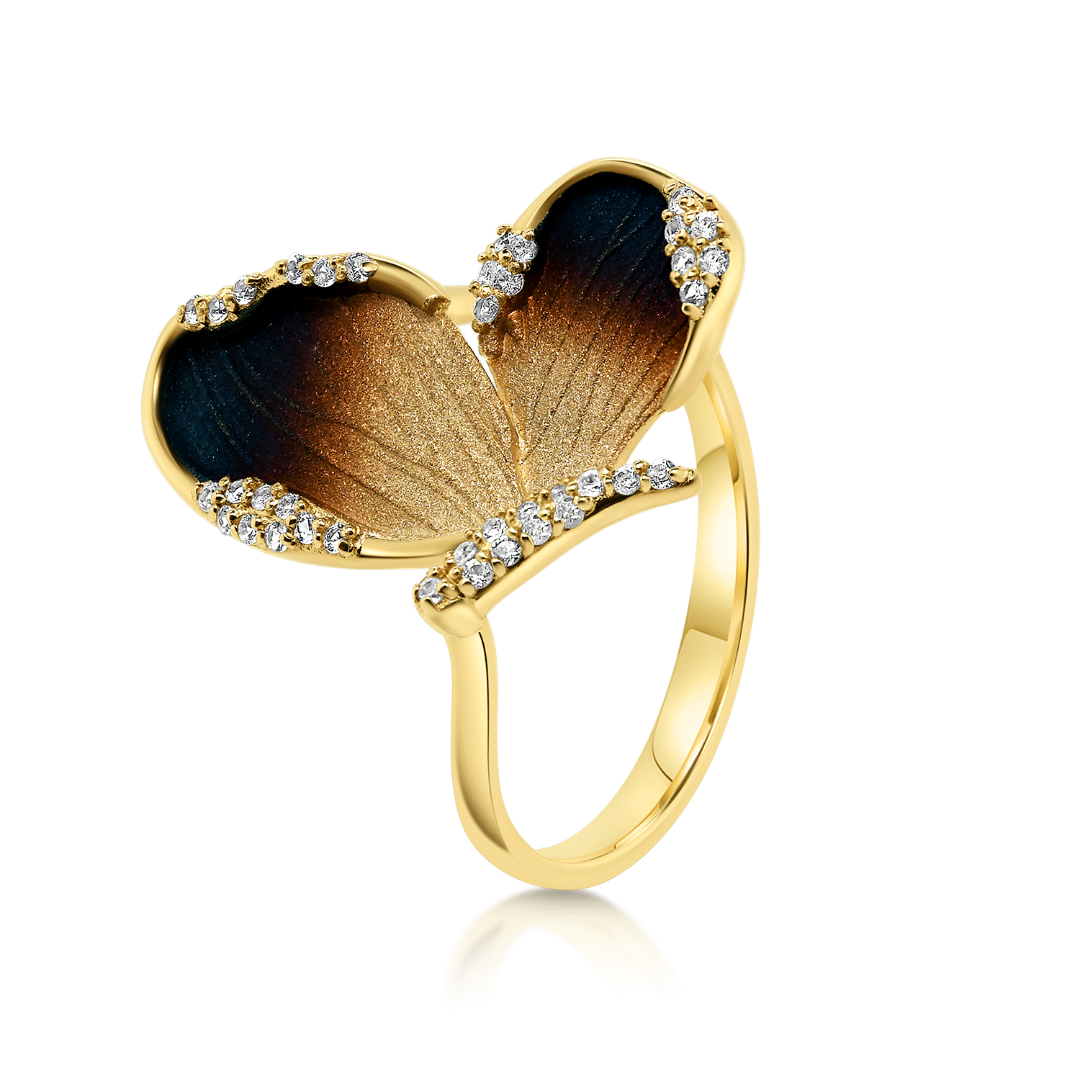 Inel cu efect sidefat din aur galben de 14K cu 39 de Safire incolore de 0.20ct.