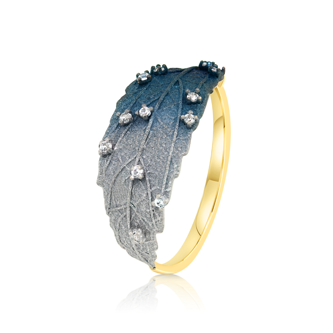 Inel cu efect sidefat din aur galben de 14K cu Safire incolore de 0.06ct.