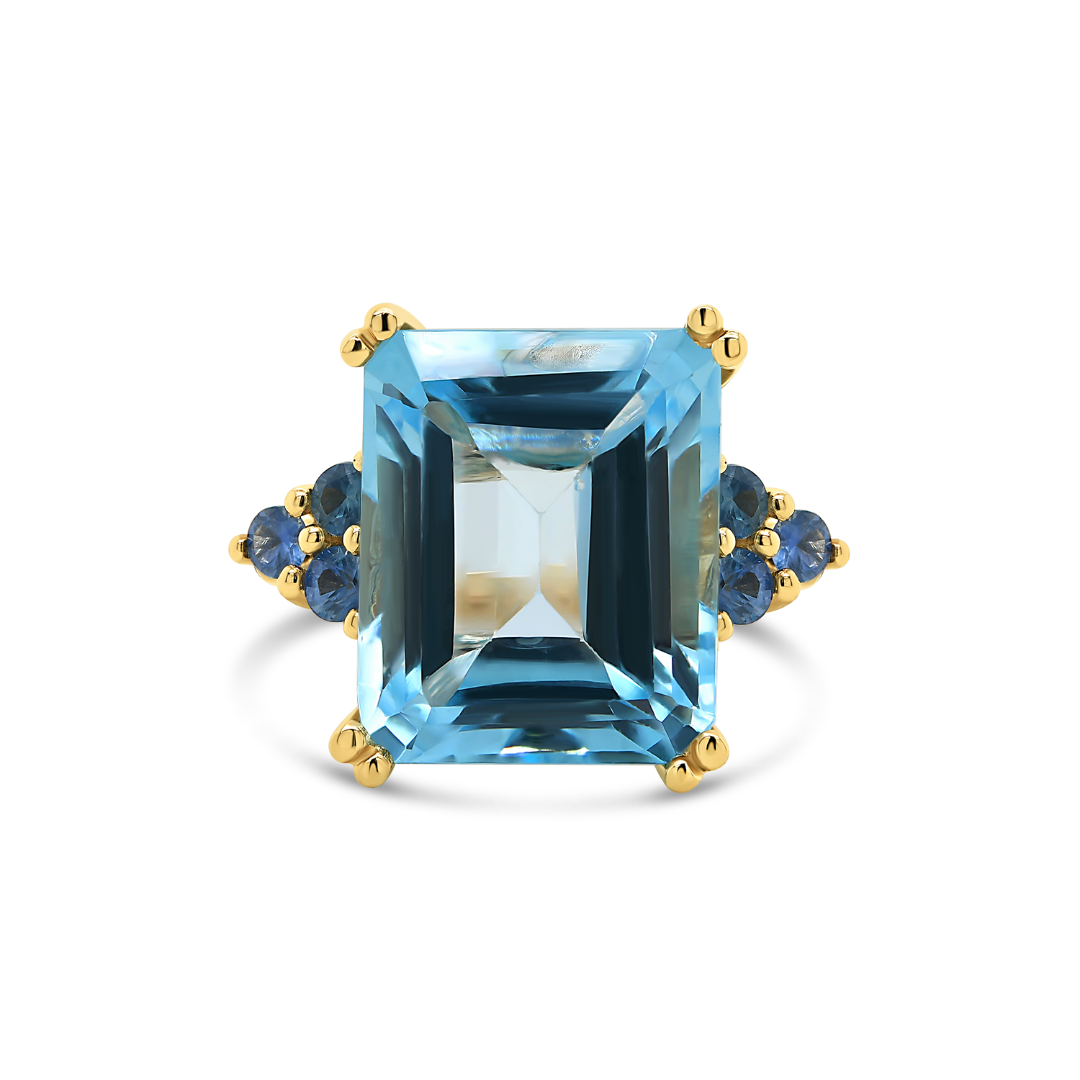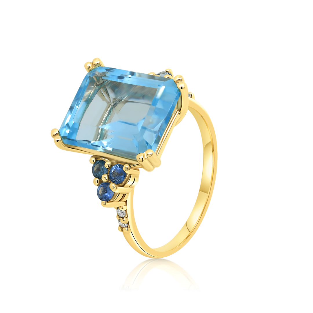 Inel din aur galben de 14K, cu Blue Topaz şi Safire albastre