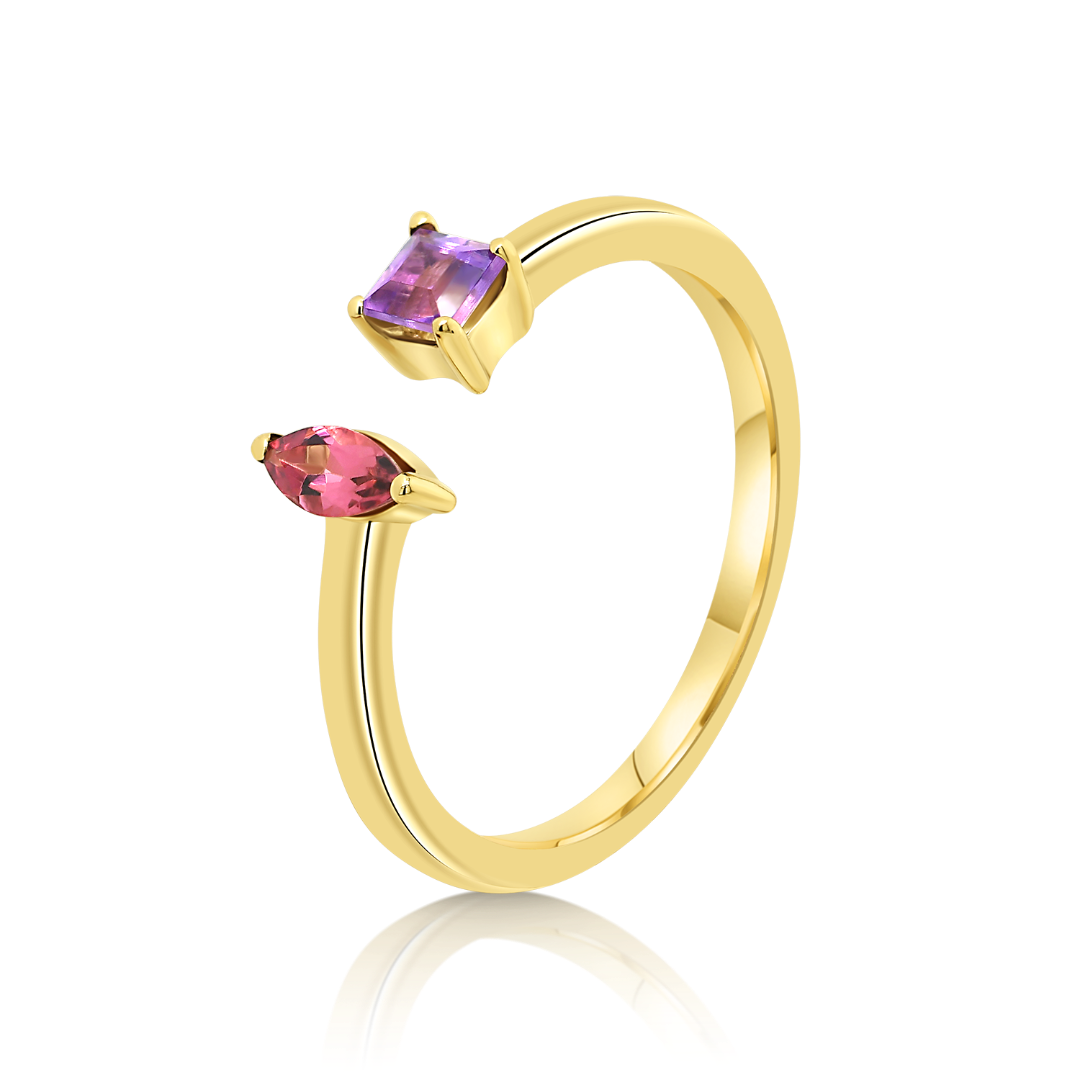 Inel din aur galben de 14K cu Turmalin și Ametist