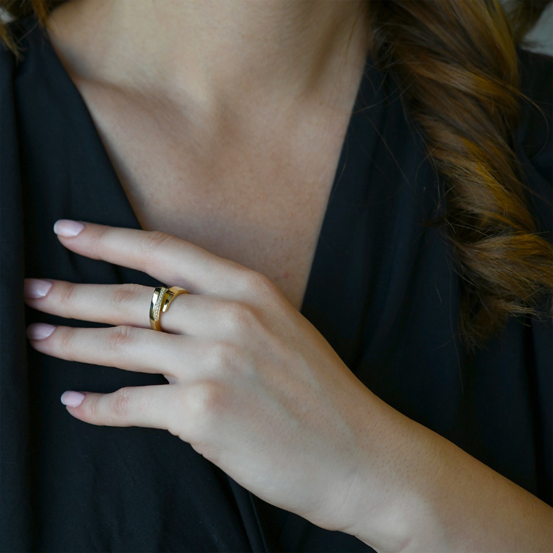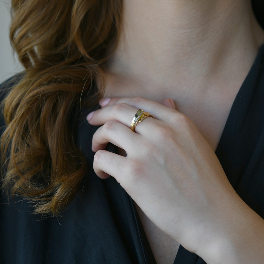 Inel din aur galben de 18K cu pietre cubic zirconia.