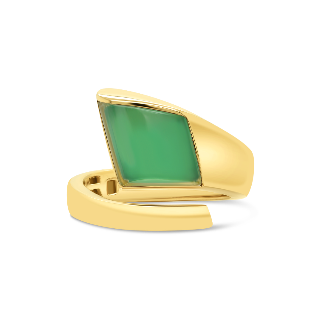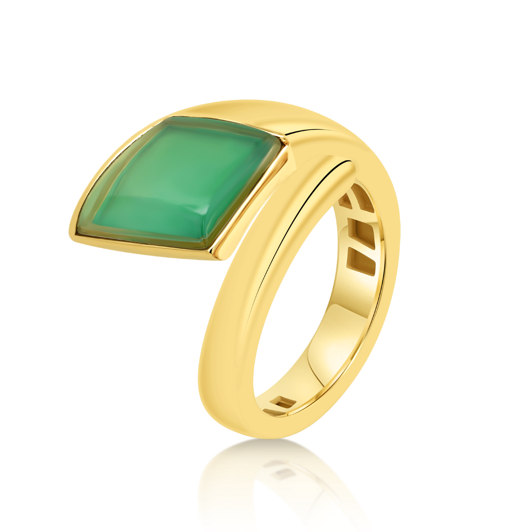 Inel din aur galben de 18K cu Agată verde.
