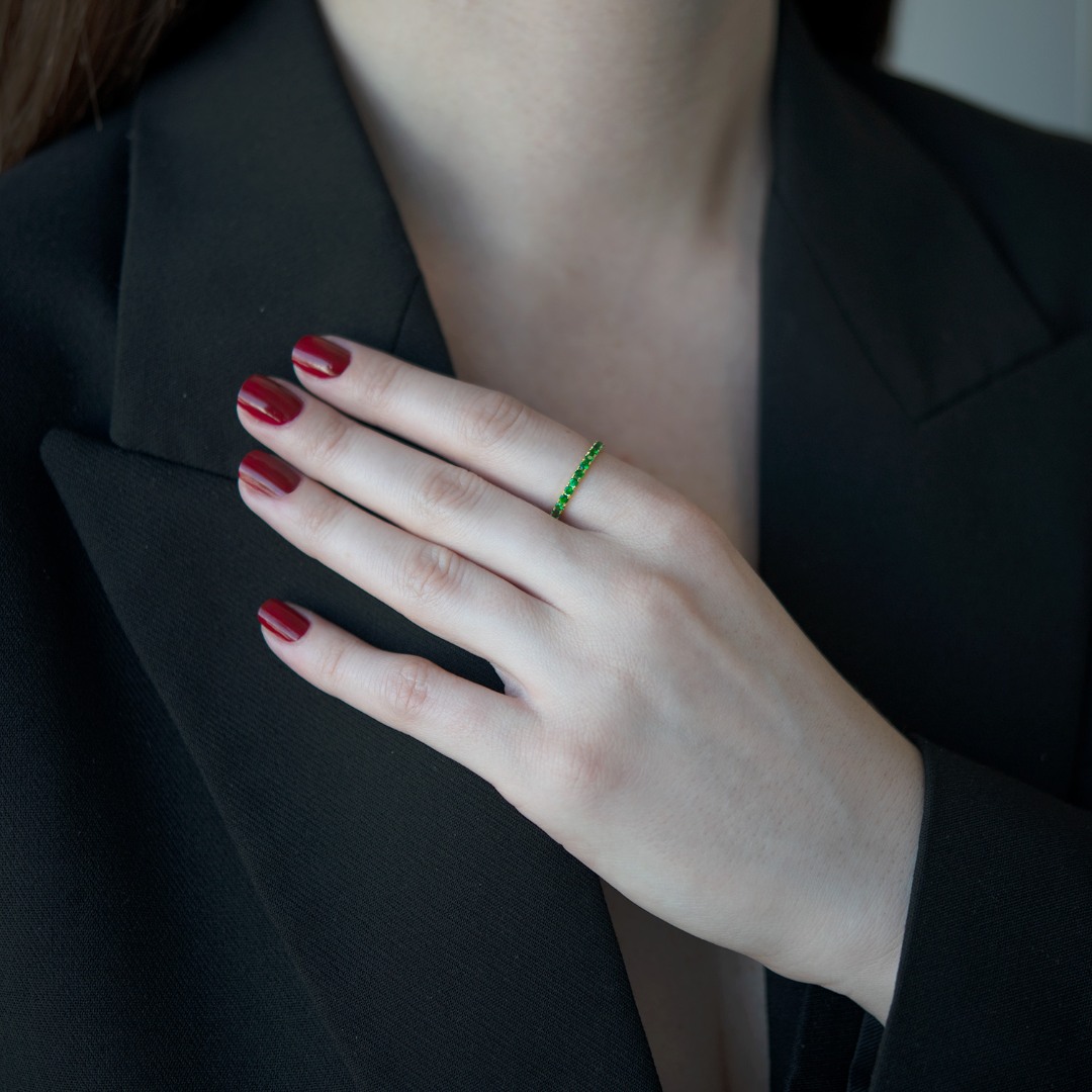 Inel Eternity din aur galben de 18K cu Tsavorite naturale.