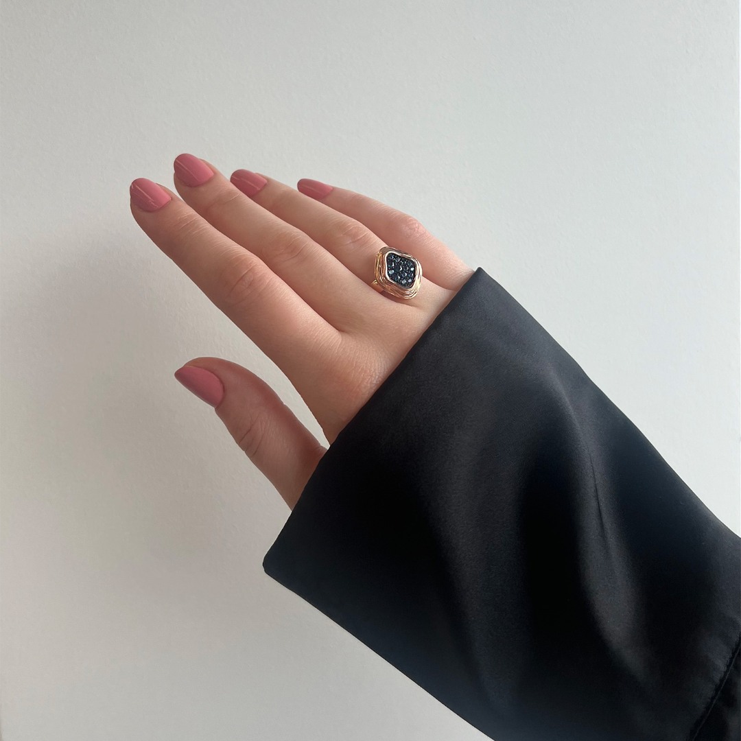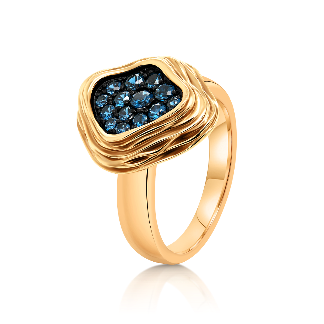 Inel din aur roz de 14K cu pietre zirconia albastre.