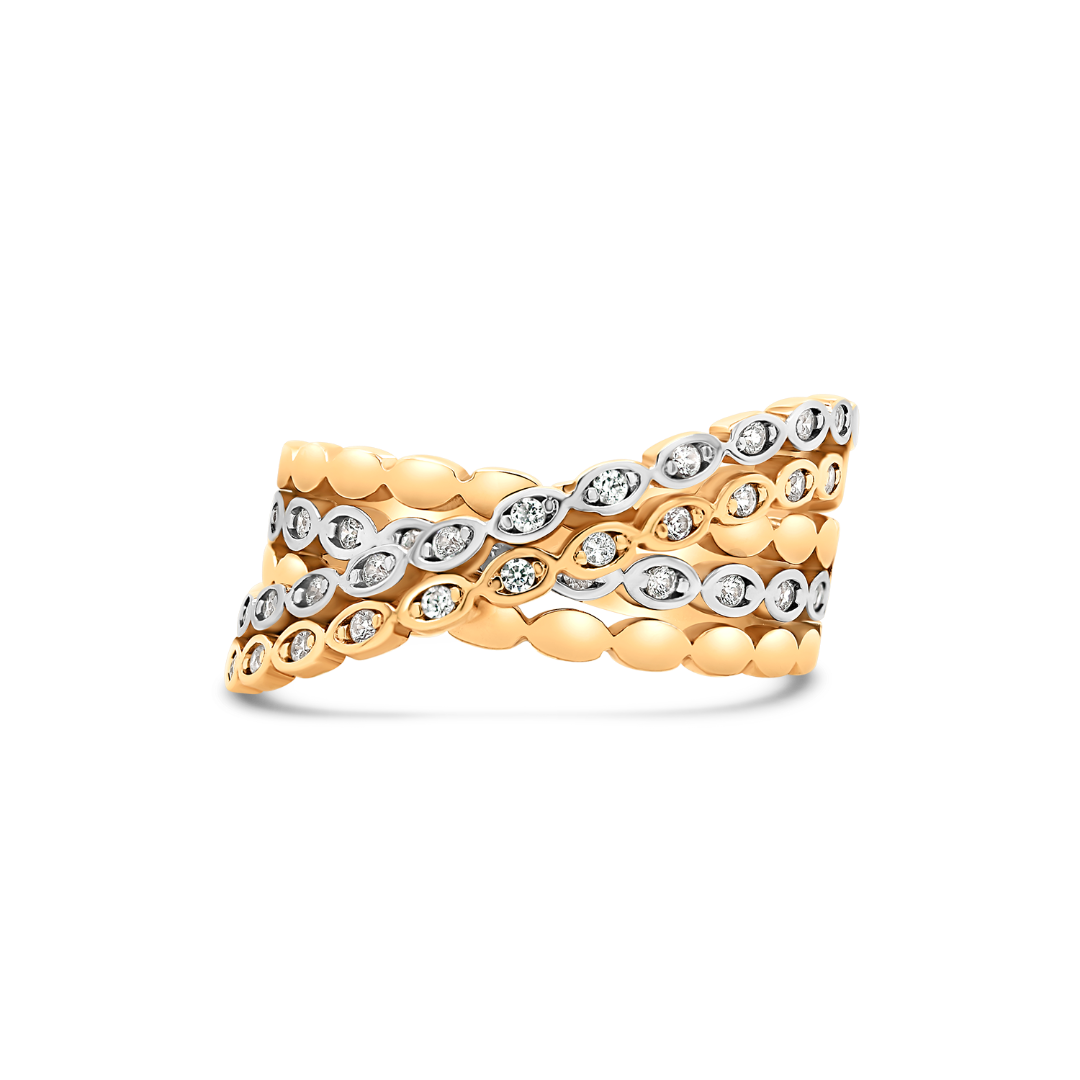 Inel din aur roz de 14K cu inserții din aur alb și pietre zirconia incolore.