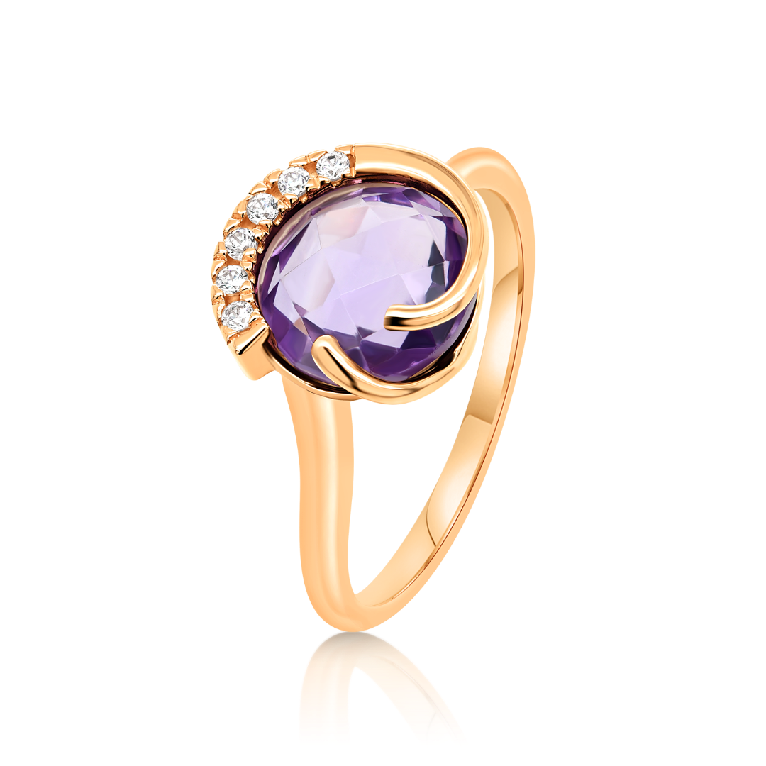 Inel din aur roz de 14K, cu Ametist şi pietre Cubic Zirconia.