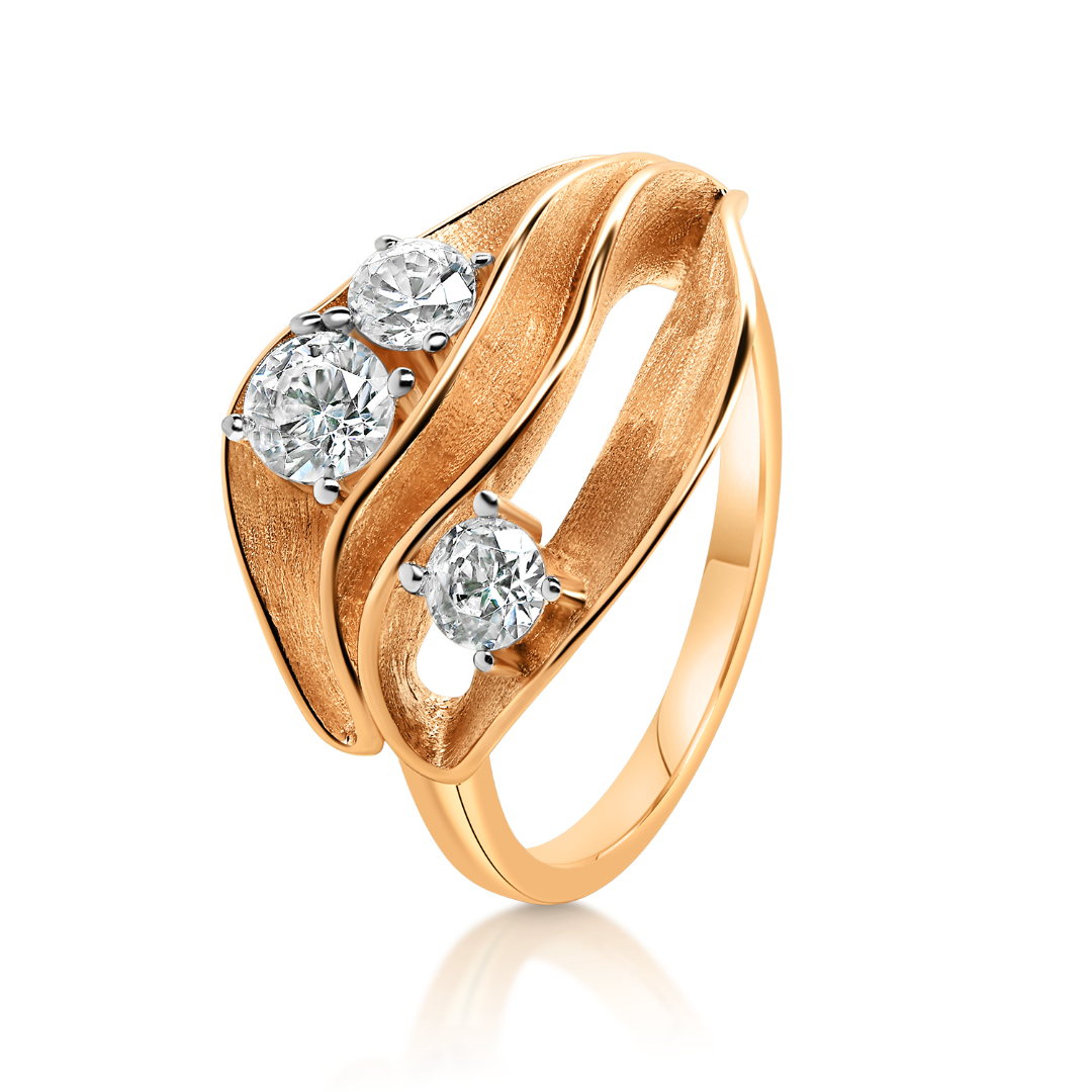 Inel cu efect satinat din aur roz de 14K și pietre cubic zirconia.